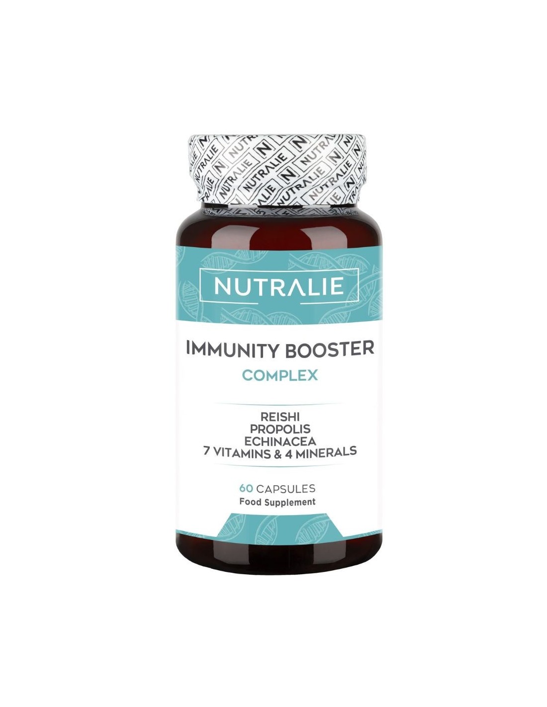 Immunity Booster Complex von Nutralie ist ein Nahrungsergänzungsmittel, das Vitamine, Mineralstoffe und Pflanzenextrakte in einer Formel kombiniert, die Nährstoffe für das normale Funktionieren des Immunsystems liefert. Seine Zusammensetzung umfasst 7 Vitamine, 4 Mineralien und Extrakte aus Echinacea, Reishi und Propolis, die in einer Kapsel für die tägliche Einnahme integriert sind.