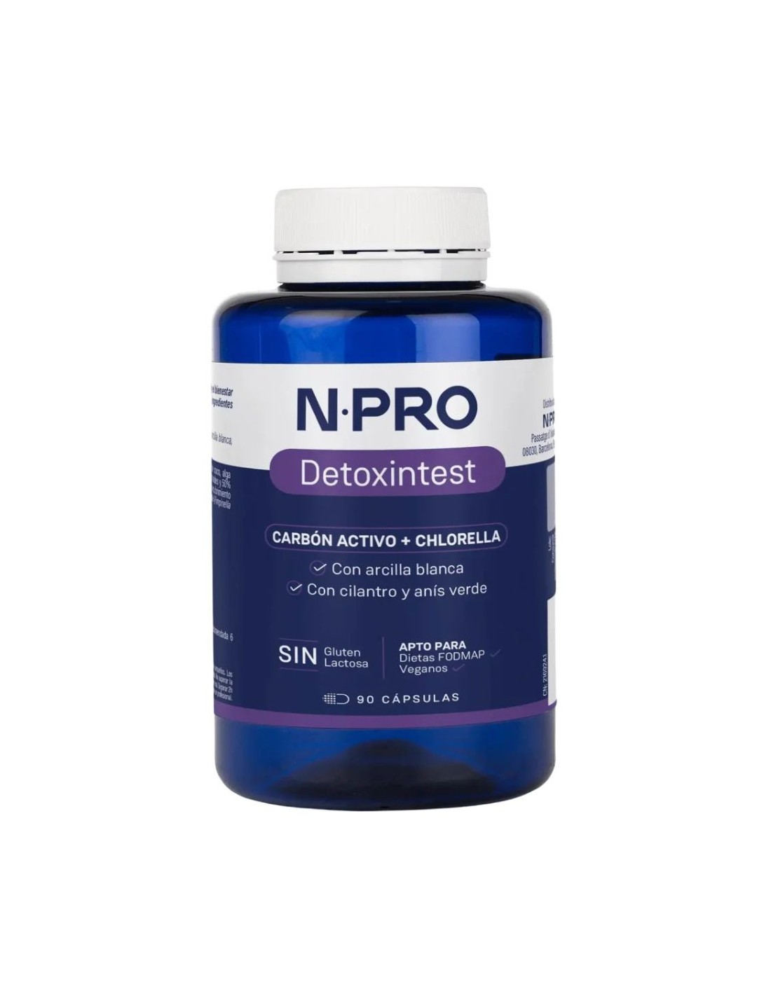 Detoxintest von NPro ist ein Nahrungsergänzungsmittel in Kapseln, das Aktivkohle, Chlorella-Algen und Pflanzenextrakte kombiniert.