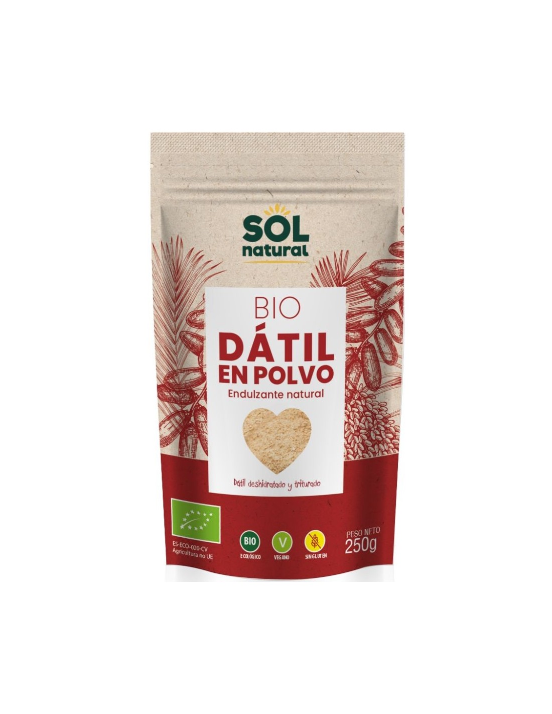 Das Bio-Dattelpulver von Solnatural ist eine gesunde und köstliche Alternative zu herkömmlichem Zucker ( 250 g ). Es wird ausschließlich aus getrockneten und gemahlenen Bio-Datteln hergestellt und bewahrt so die natürliche Süße und die Nährwerte dieser Frucht. Dank ihrer feinen und vielseitigen Textur lässt sie sich ideal in alle Arten von Zubereitungen einarbeiten, von Smoothies und Joghurts bis hin zu Desserts, Gebäck und gesunden Soßen.