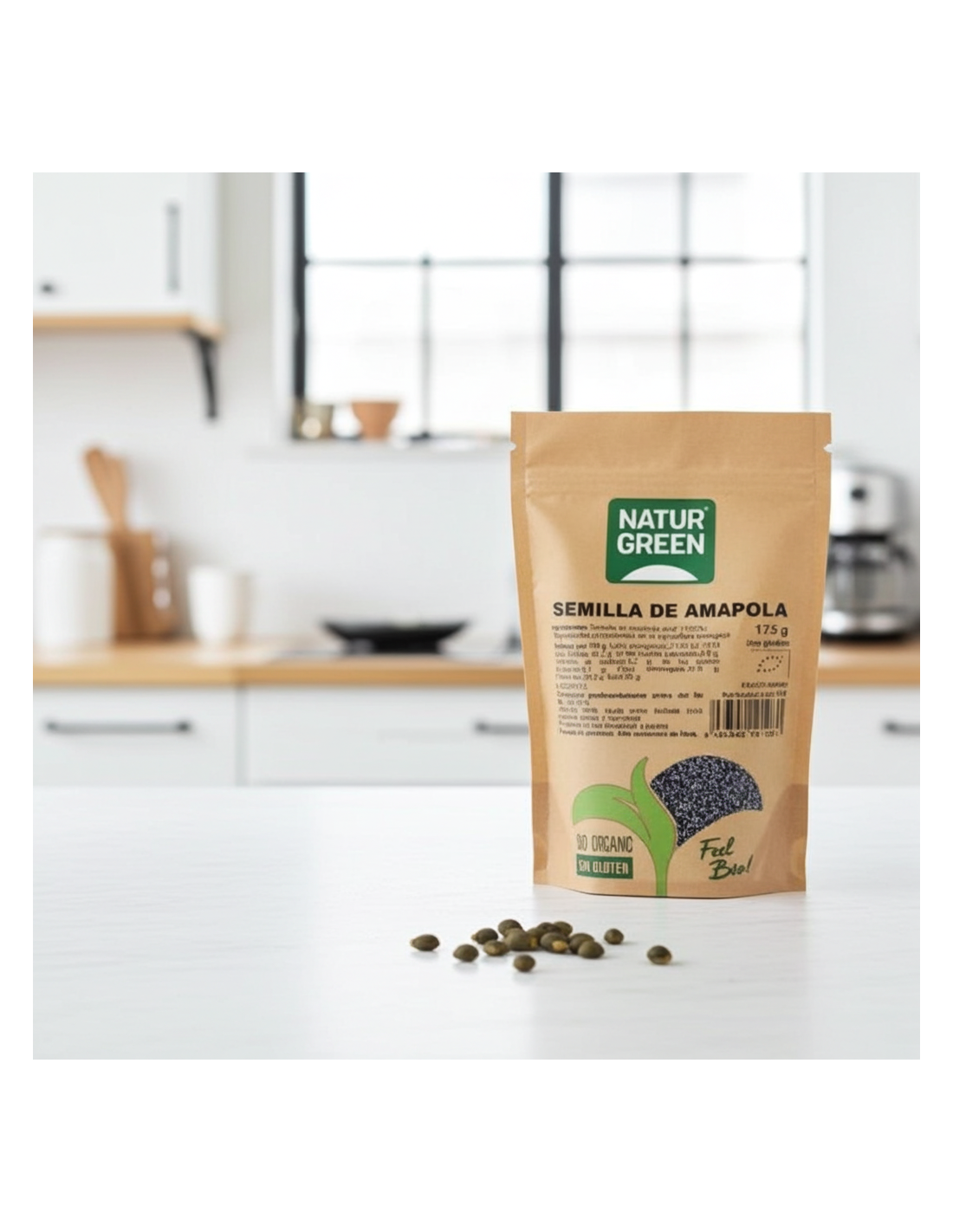 NaturGreen Bio Mohnsamen ( 175 g) sind kleine Ölsaaten, eine natürliche Quelle für gesunde Fette, Proteine, Ballaststoffe, Kalzium und Eisen. Ideal für Brot, Gebäck, Salate und Pasta.