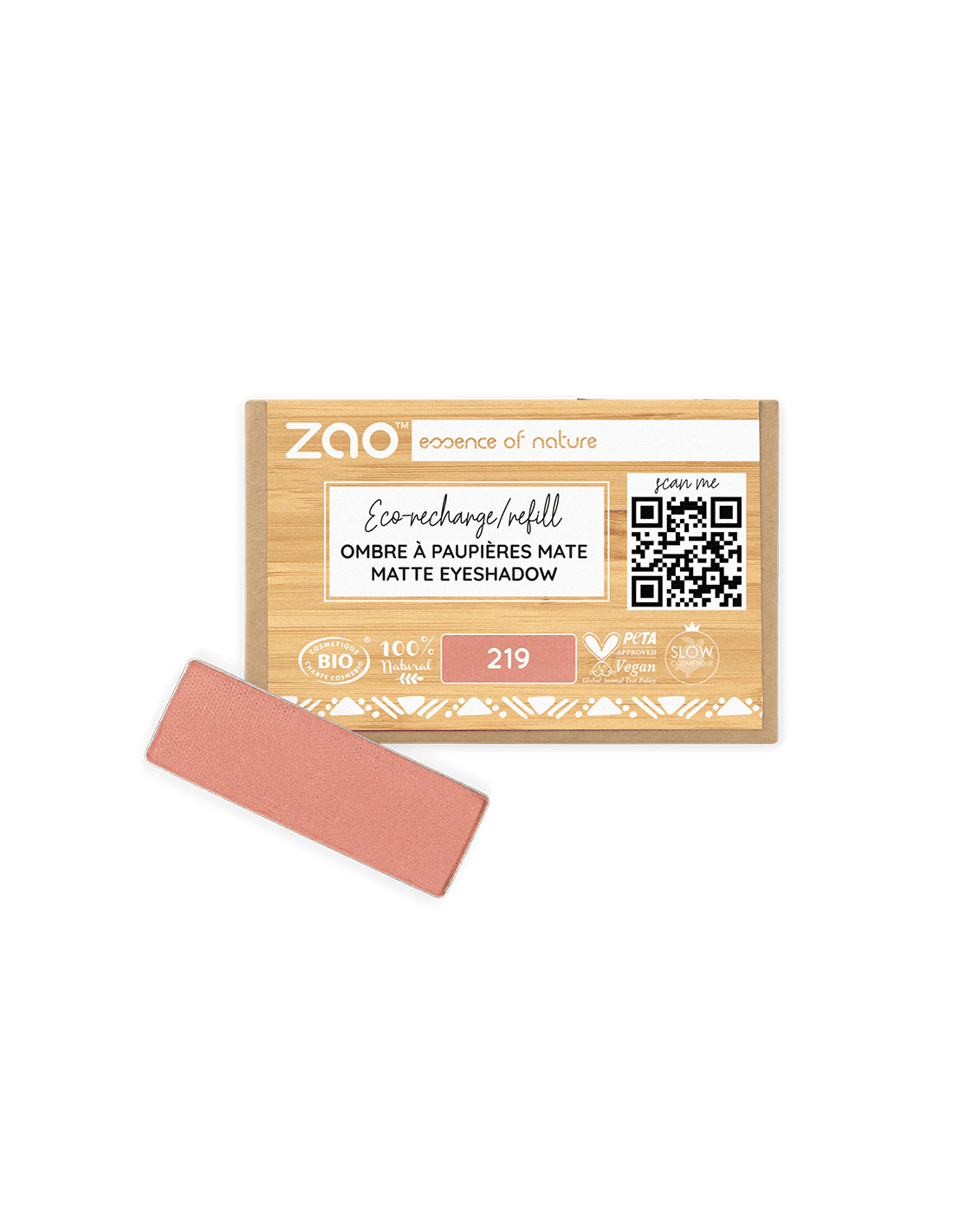 Matte Lidschatten im Nachfüllformat 219 Rose Terracotta von ZAO Make Up. Warmer, erdiger Rosé-Ton, ideal, um den Augen Wärme und Tiefe zu verleihen.