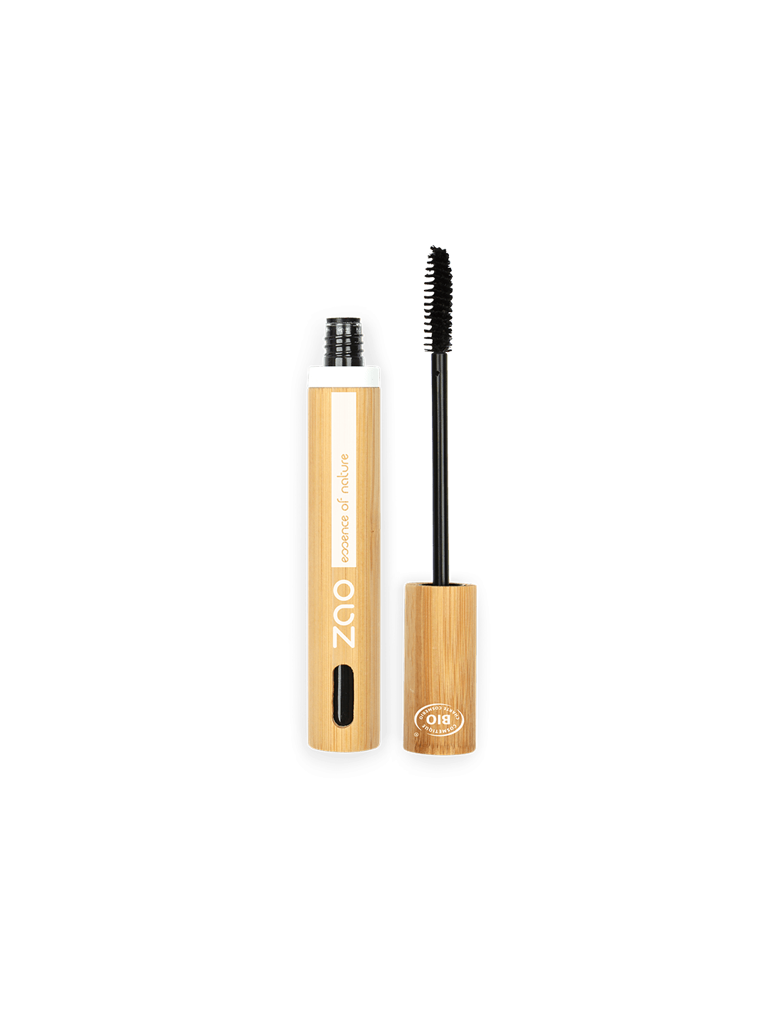 Zao Make up Aloe Vera Mascara 090-Noir (7 ml): COSMOS Bio- und Vegan-zertifizierte Formel, die intensive Definition und Komfort bietet. Die spezielle Bürste trennt und umhüllt jede Wimper für ein tiefschwarzes und präzises Finish.