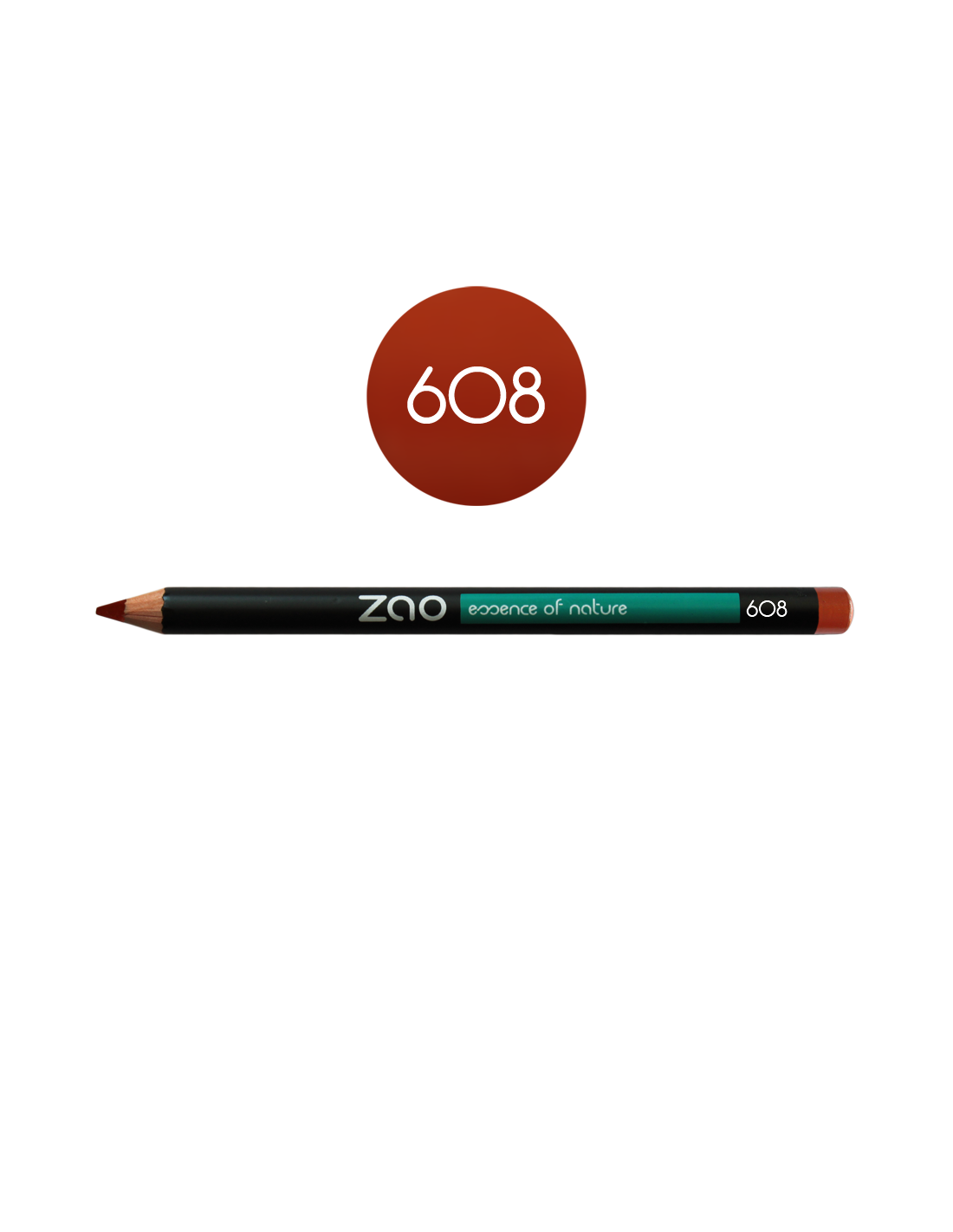 Der Brun Orange Multifunction Pencil 608 von Zao Make up vereint Vielseitigkeit und Leistung in einem Produkt: Eyeliner, Lipliner und Augenbrauenstift in einem warmen, edlen Farbton.