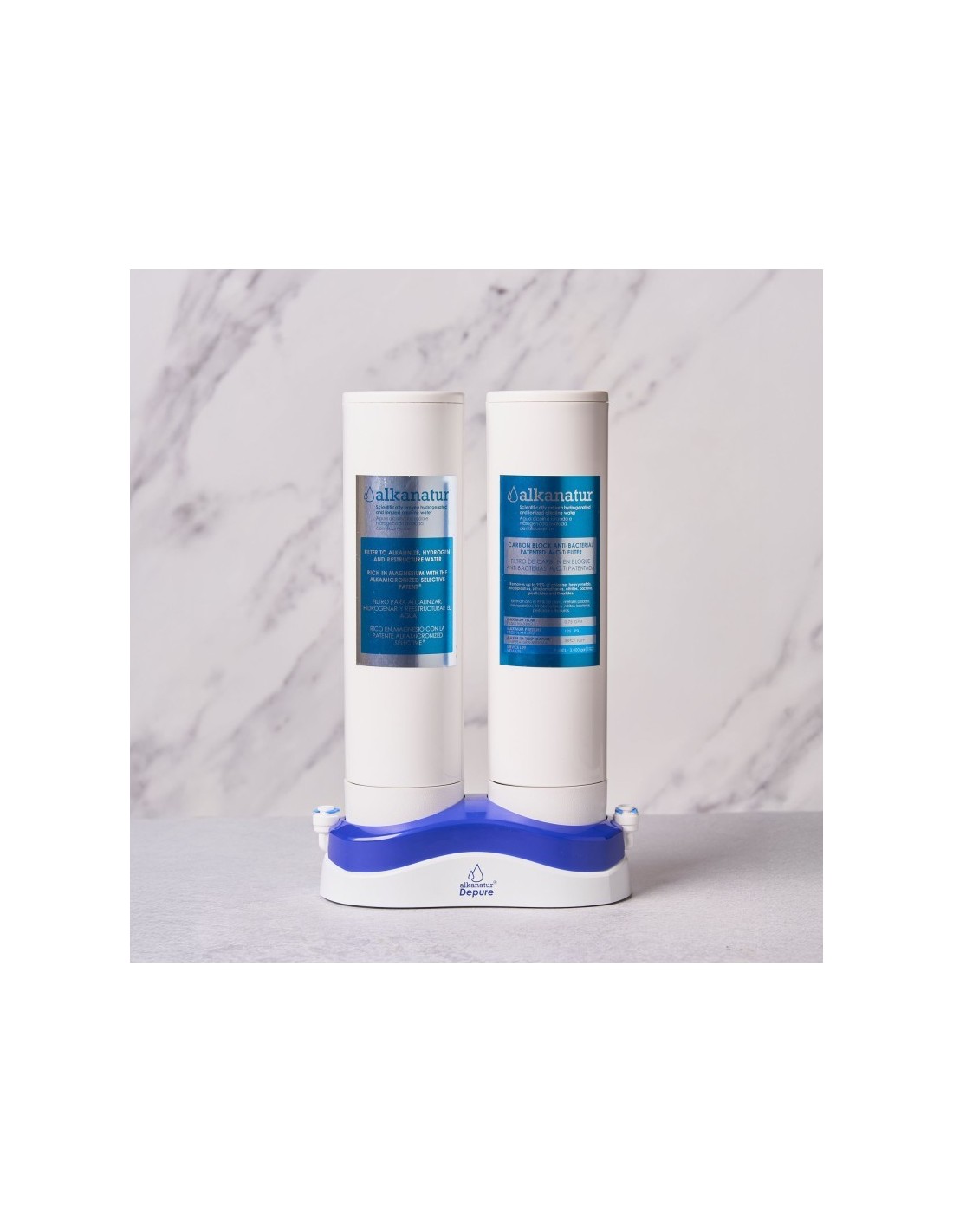 Das Alkanatur Depure Tisch-Ultrafiltrationssystem ist ein fortschrittliches Gerät, das Leitungswasser in ein gesünderes, ausgeglichenes und angenehmeres Wasser für den täglichen Gebrauch verwandelt. Dank seiner ökologischen Filtertechnologie entfernt es bis zu 99 % des Chlors, der Schwermetalle, der Pestizide, der Nitrate, des Mikroplastiks und der Trihalomethane und respektiert dabei die natürlichen Mineralien des Wassers.