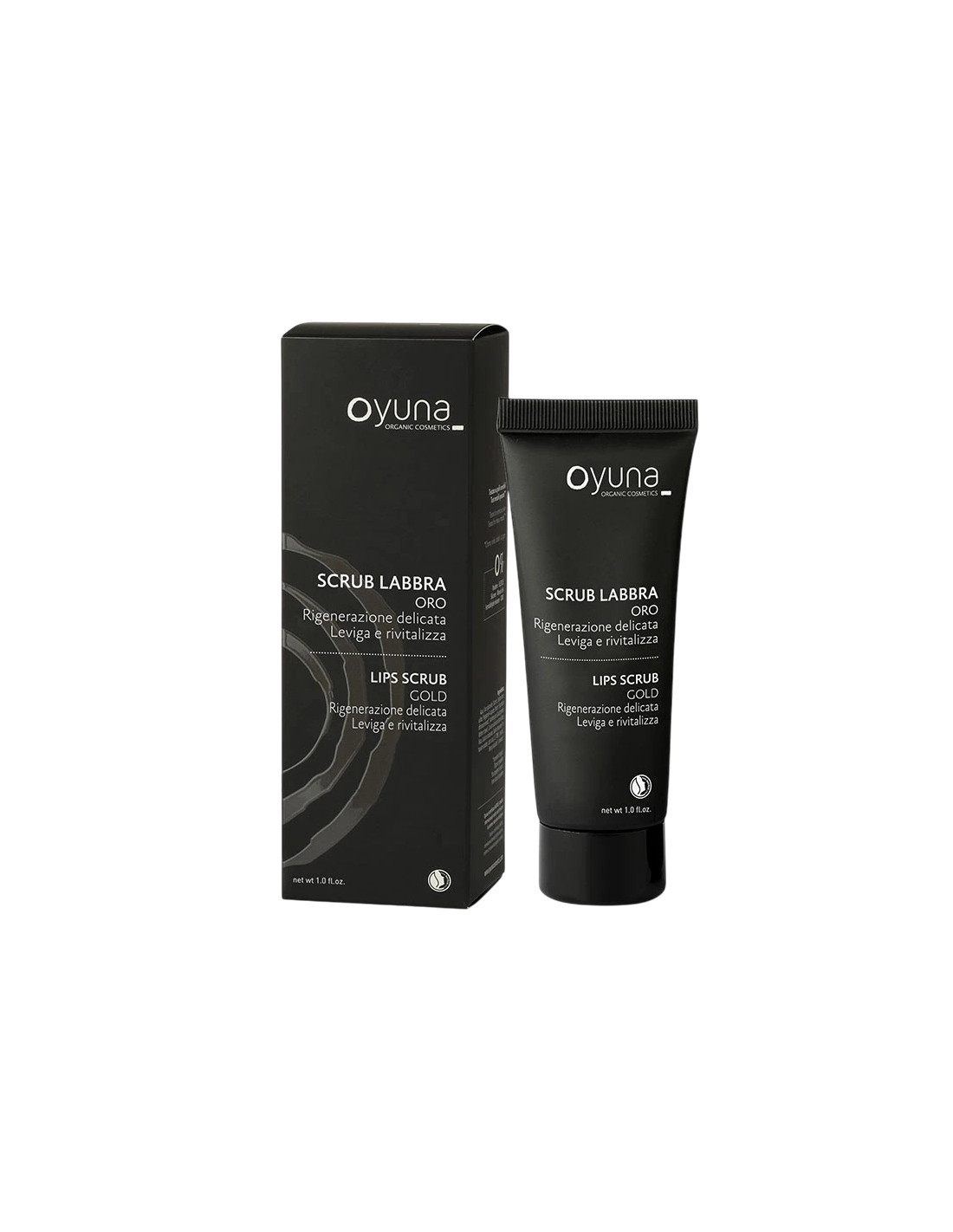 Oyuna "Gold" lip scrub, μια κρέμα περιποίησης που έχει σχεδιαστεί για να χαρίζει απαλότητα και λάμψη στο περίγραμμα των χειλιών. Η βιολογική του σύνθεση συνδυάζει μέταλλα και φυτικά έλαια για μια λεπτή αισθητηριακή εμπειρία.