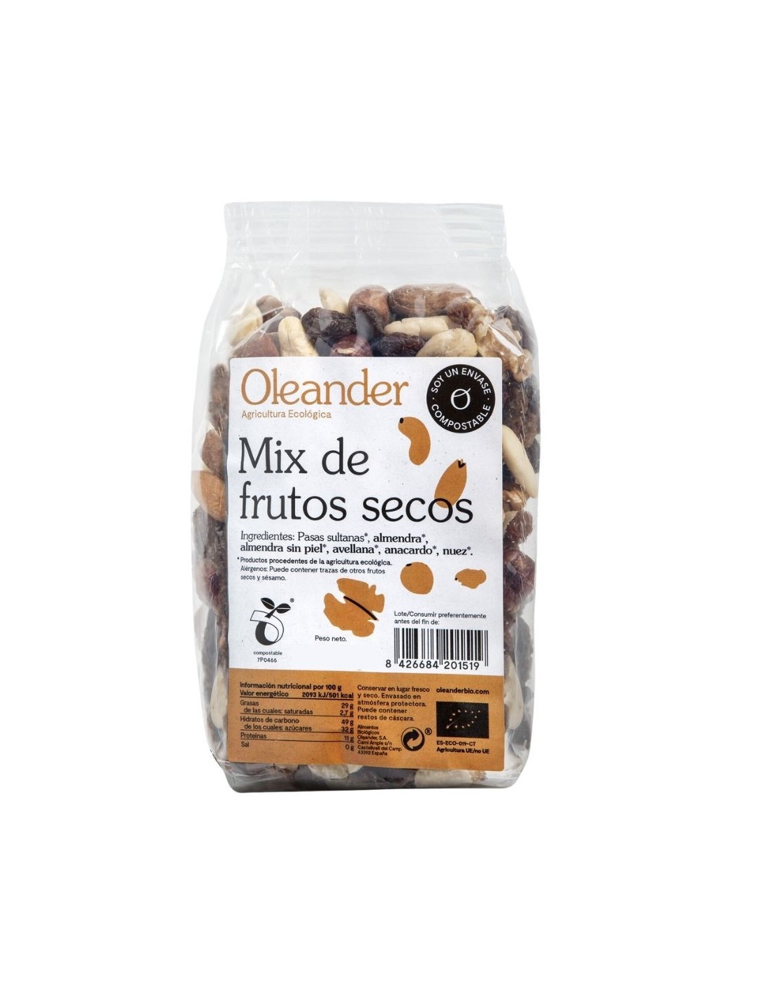 Το Eco Nut Mix της Oleander είναι ένα βιολογικό μείγμα πλούσιο σε ενέργεια, υγιεινά λιπαρά, φυτικές ίνες και βασικά μέταλλα. Ιδανικό ως φυσικό σνακ ή ως θρεπτική προσθήκη σε κάθε είδους συνταγές.