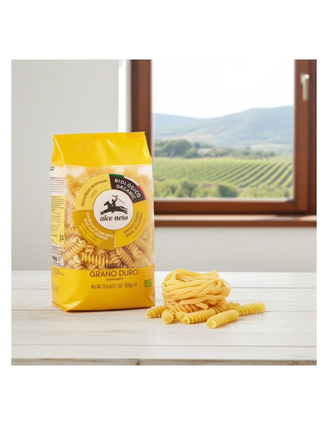 Alce Nero's Fusilli de Trigo Duro Eco 500 g are an organic Italian pasta made with 100% Italian durum wheat from organic farming. Its traditional production process, with the bronze drawing method, gives the pasta a rough and consistent surface, ideal for trapping sauces and enhancing the flavor of each dish.