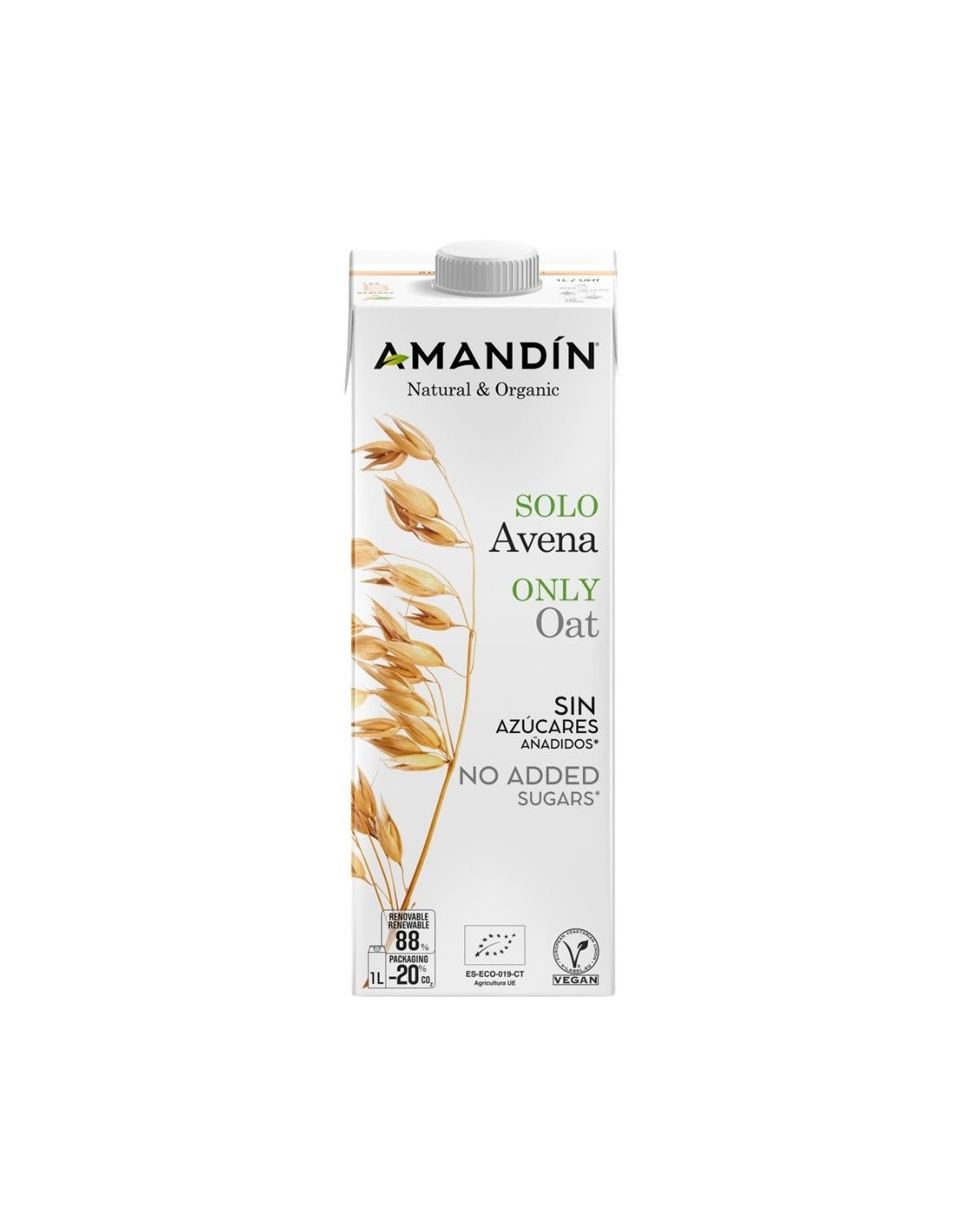Amandin's Oats Only Oats Vegetable Drink Eco 1 L is a 100% natural and organic option, created with only two ingredients: oats (15%) from organic farming and water. This minimalist formulation responds to the demand for a clean product, without unnecessary additives, which preserves all the authentic flavor of the cereal.
