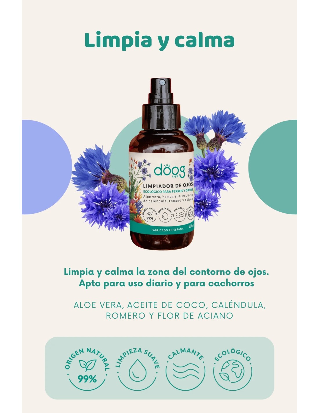 This natural eye cleanser for dogs and cats is formulated to provide a delicate, effective and respectful cleansing of the eye area, helping to remove eye gunk, dirt and secretions without irritating or altering the natural balance of the eye.