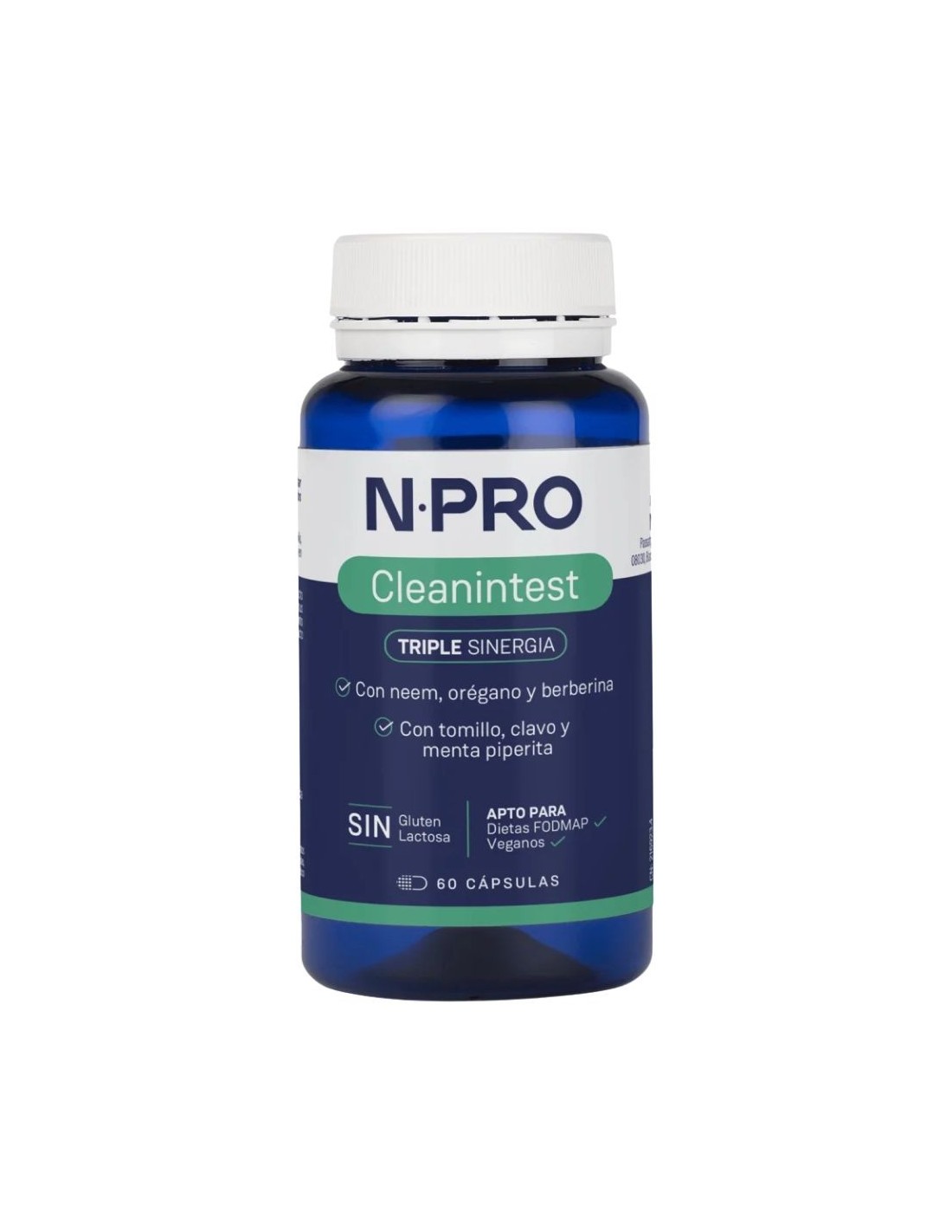 Cleanintest by NPro is a food supplement formulated with a combination of plant extracts traditionally used in the intestinal environment. Its composition includes barberry, neem, oregano, thyme, clove and mint, plants recognized for their presence in formulas designed to care for the intestinal environment.