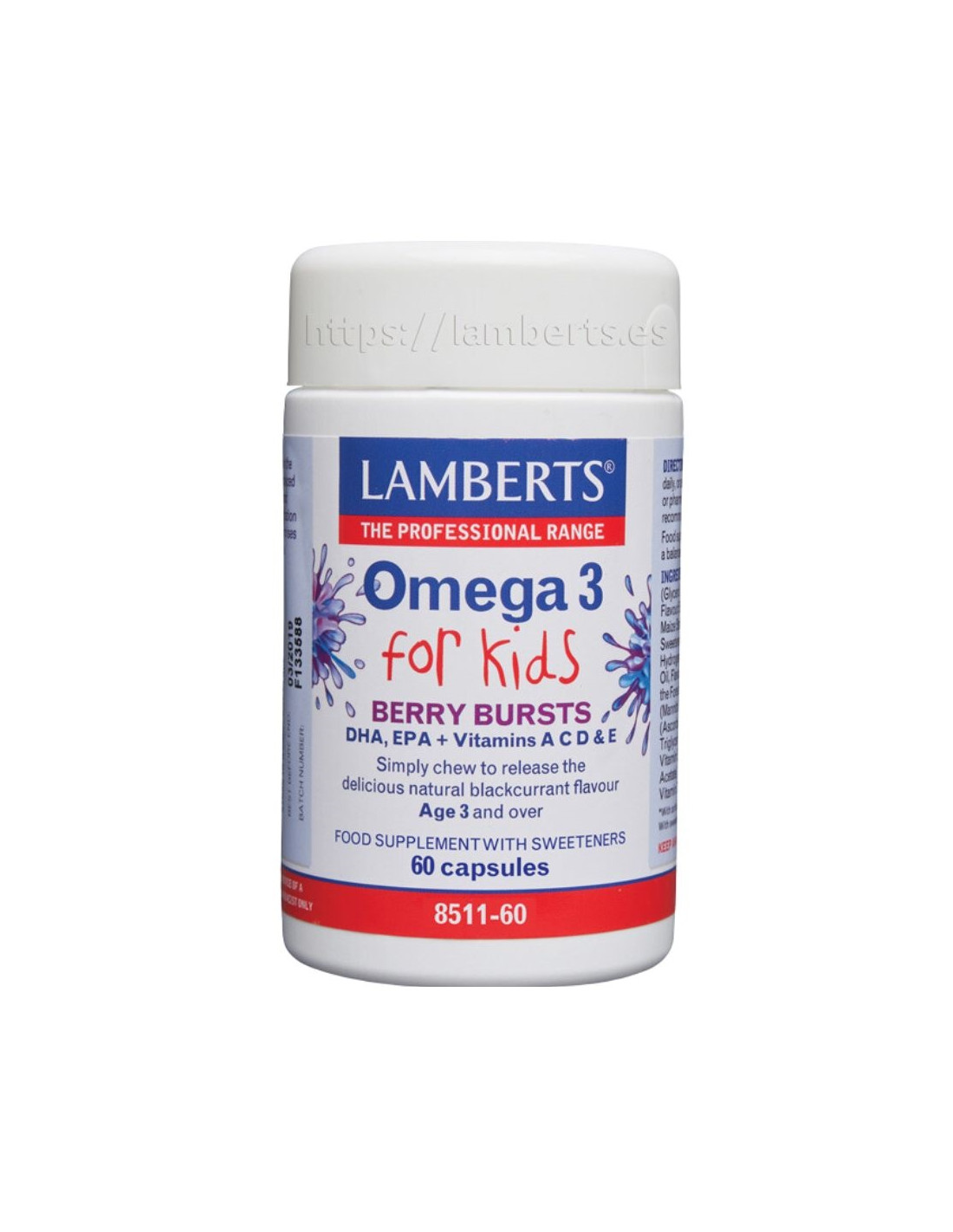Omega 3 para Niños 60caps Lamberts proporciona ácidos grasos poliinsaturados de la serie omega‑3, conocidos por su presencia en dietas ricas en pescado. Es un formato pensado para familias que buscan complementar la ingesta de estos nutrientes esenciales en niños.