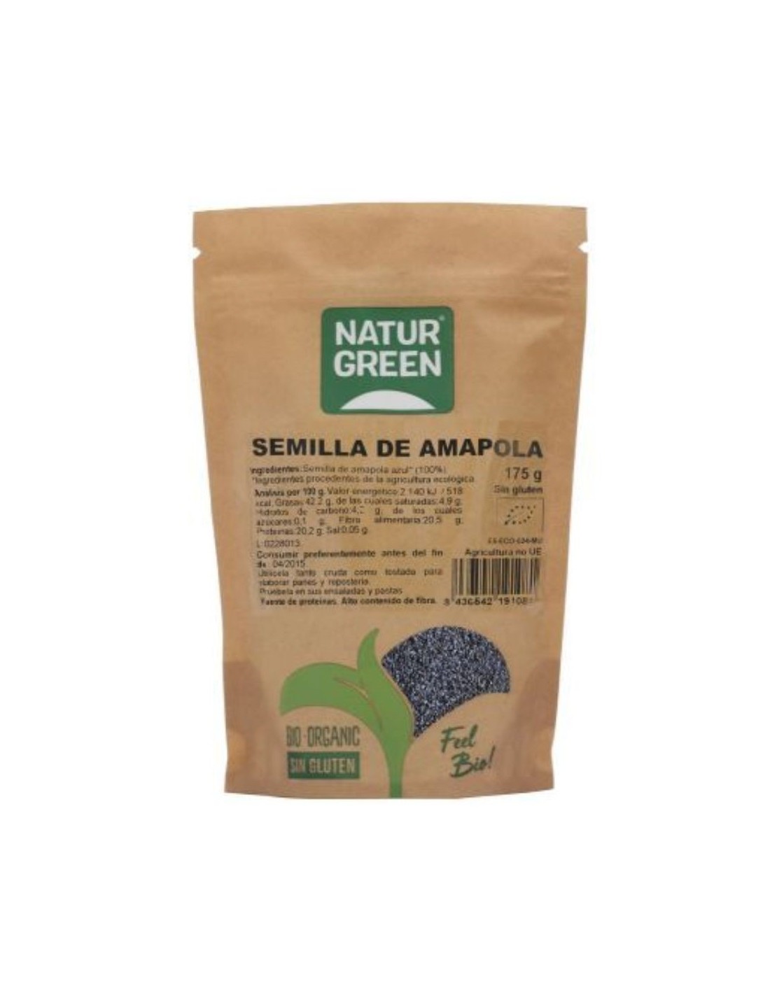 Las Semillas de Amapola Bio 175 g NaturGreen provienen de agricultura ecológica y destacan por su delicado sabor y su versatilidad en la cocina. Estas semillas oleaginosas, además de aportar una textura crujiente característica, son ricas en grasas saludables, proteínas, fibra, calcio y hierro, contribuyendo a mantener una dieta equilibrada.