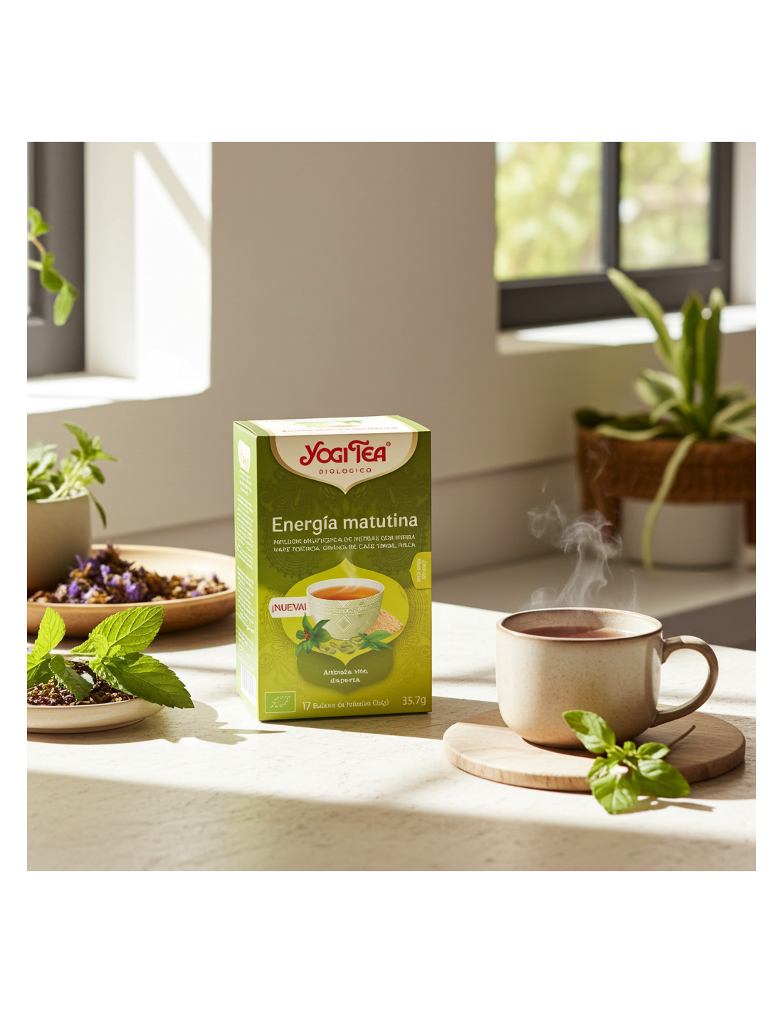 La Infusión Ecológica Energía Matutina de Yogi Tea es una mezcla revitalizante elaborada con ingredientes naturales que aportan energía, claridad y bienestar desde la primera taza del día. Su combinación de mate, granos de café verde y maca proporciona un estímulo natural que ayuda a activar cuerpo y mente de manera equilibrada, sin los efectos bruscos del café convencional.