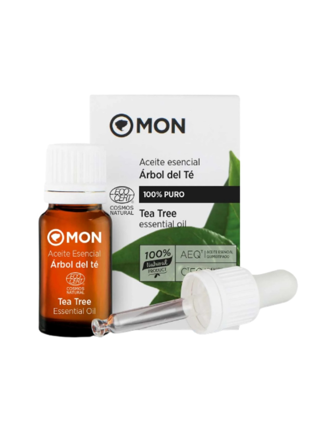Aceite esencial de Árbol del Té (Mon) en presentación ecológica de 12 ml. Producto pensado para quien busca ingredientes naturales y de uso versátil en cosmética y aromaterapia.