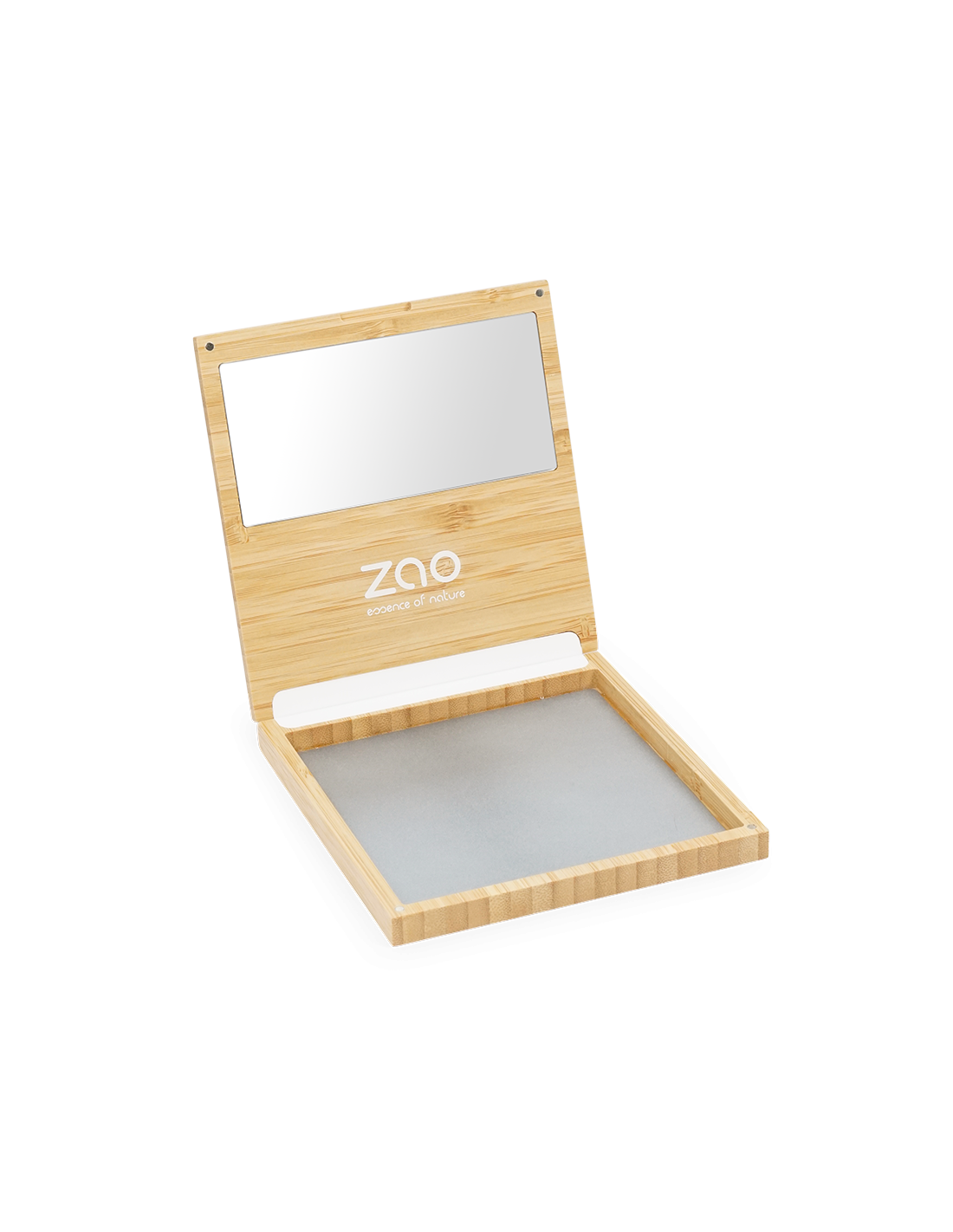 Paleta Bambú Box L de ZAO Make Up: estuche grande en bambú natural, diseñado para albergar recargas de sombras, polvos y rubores. Formato L pensado para organizar y llevar tu maquillaje con estilo.