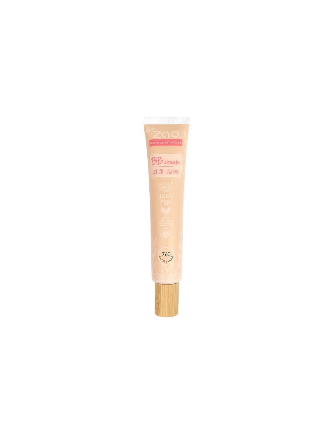 BB Cream ecológica ZAO en tono 760-Clair: cobertura ligera que unifica el rostro y aporta un acabado natural y luminoso. Fórmula respetuosa con el medio ambiente y la piel.