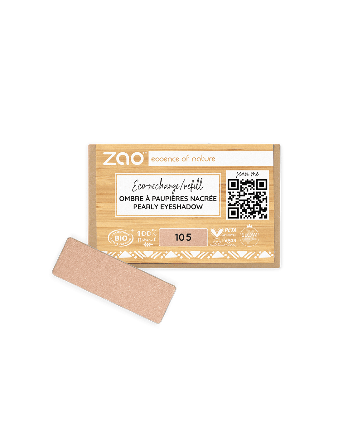 ZAO Recarga Sombra Nacarada 105 Sable Doré es una sombra en formato recarga diseñada para integrarse en paletas recargables ZAO, perfecta para quienes buscan versatilidad y acabado luminoso.