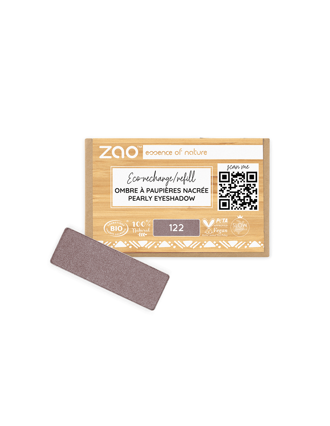 ZAO Recarga Sombra Nacarada 122 - Rose des Sables es una sombra en formato recarga de la línea ZAO Make Up, diseñada para integrarse en paletas personalizables y facilitar la renovación del color sin necesidad de reemplazar el estuche completo.
