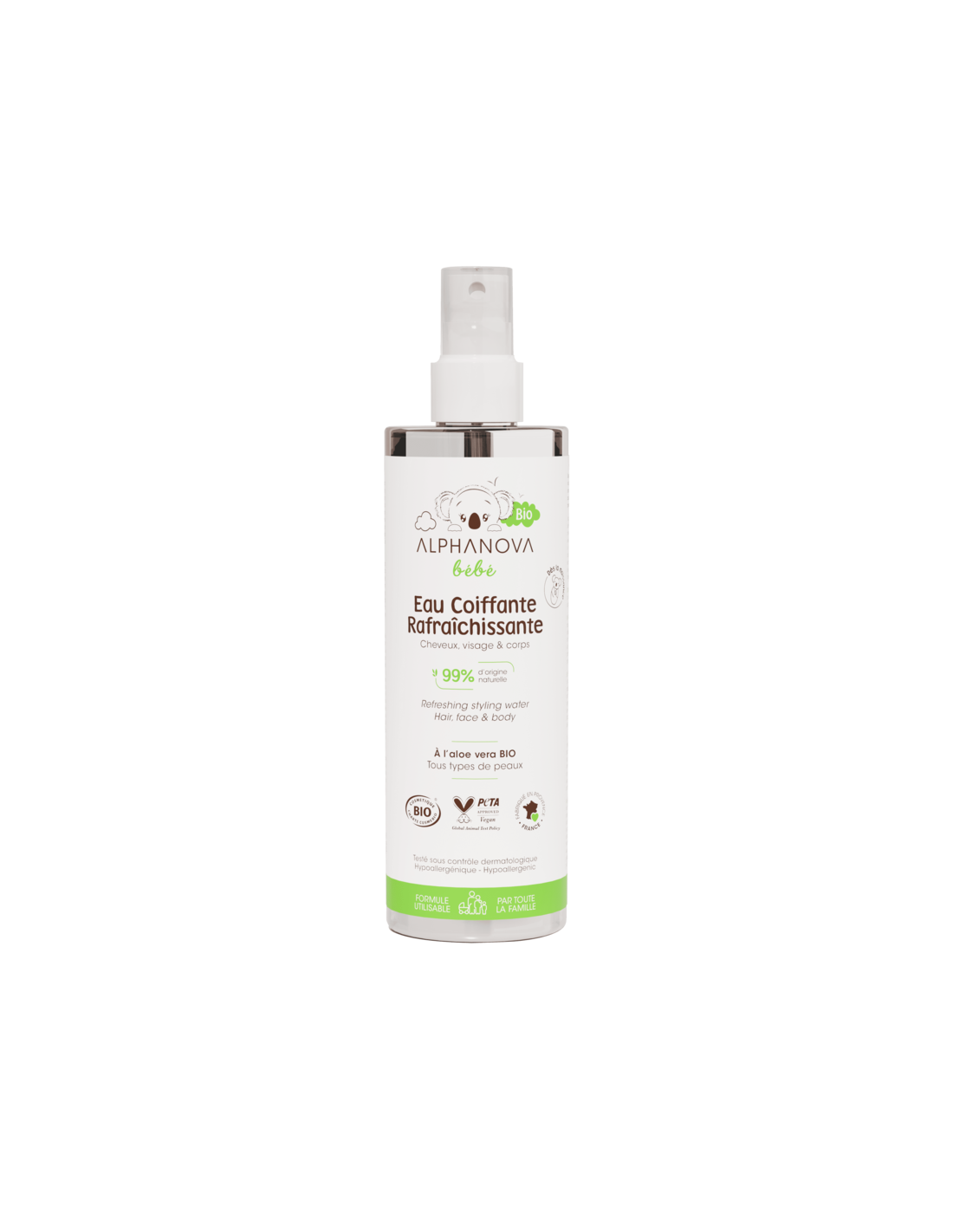 Alphanova es una marca orientada al cuidado natural de la piel y el cabello infantil, y este agua de peinado se integra en rutinas diarias de cuidado suave y respetuoso con la sensibilidad del bebé.