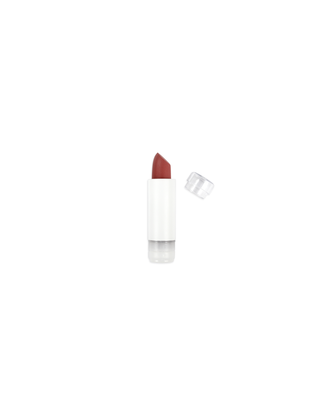 Modo de uso: insertar la recarga en el estuche recargable ZAO hasta encajar, aplicar directamente sobre labios o con pincel para mayor precisión. Reaplicar según necesidad para intensificar el color.