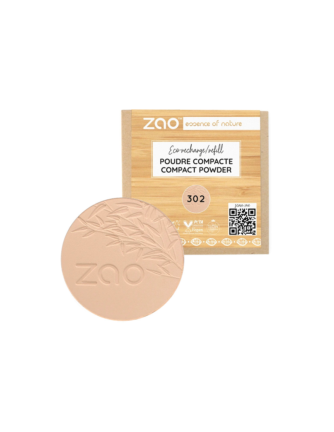 Recarga de Polvo Compacto ZAO Make Up en tono 302-Beige Orangé: un polvo en formato recambio pensado para unificar el tono y ofrecer un acabado natural y mate.
