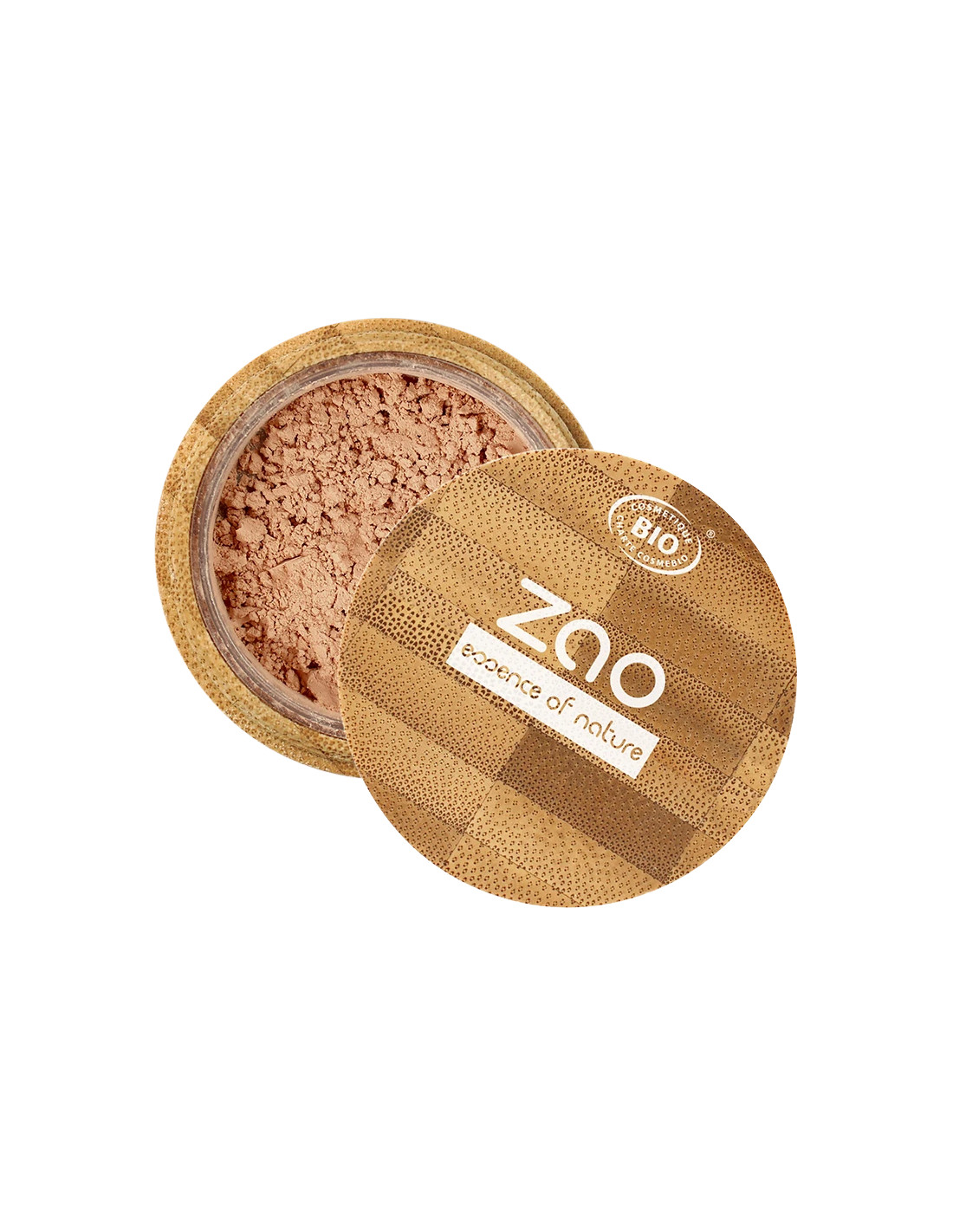 Maquillaje Mineral Ecológico Zao en el tono 505-Beige Noisette: una base en polvo de textura fina que ofrece un acabado natural y fresco. Fórmula mineral con enfoque ecológico, ideal para quienes buscan una cobertura modulable sin efecto máscara.