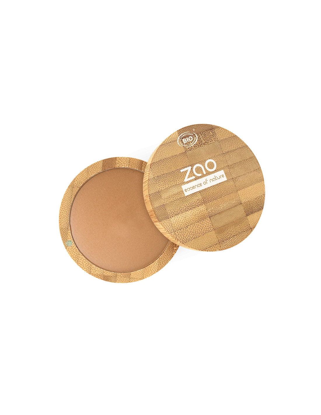 Terracota Ecológica ZAO en el tono 342 - Caramel Cuivré: polvo compacto que aporta calidez y un sutil matiz cobrizo para un aspecto bronceado natural.