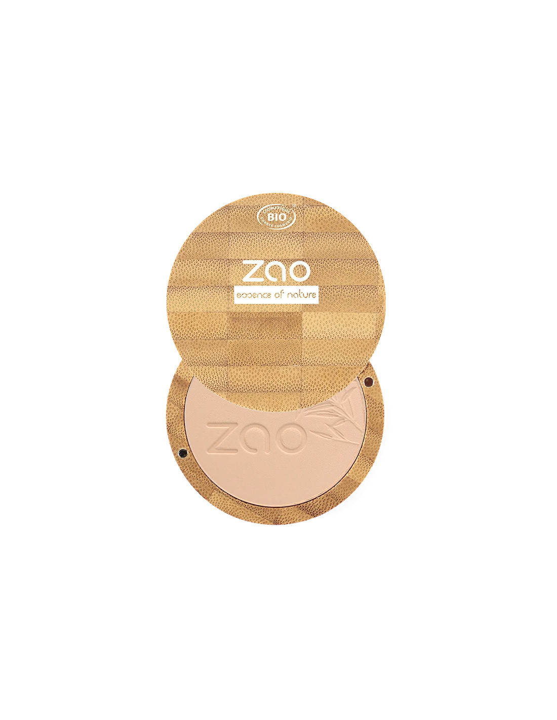 Polvo compacto ecológico ZAO en tono 302-Beige Orangé: una solución práctica para unificar el tono del rostro y controlar el brillo a lo largo del día. Presenta un formato compacto cómodo y portátil.