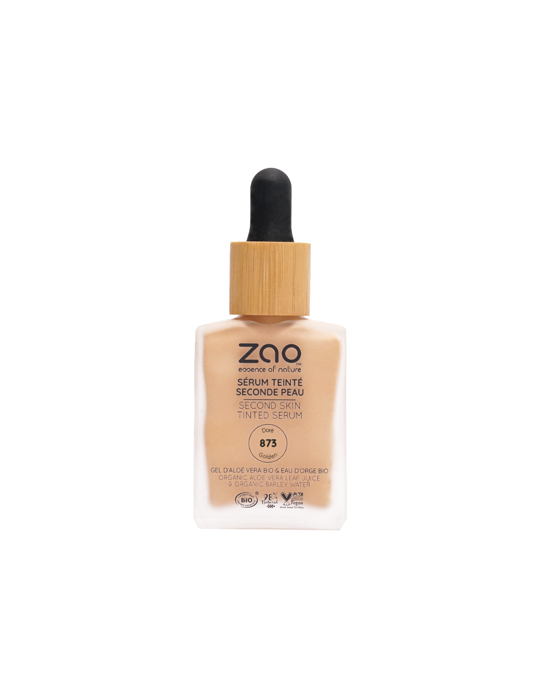 Sérum con color Segunda Piel 873-Doré de ZAO Make Up es una base de maquillaje en textura sérum diseñada para fundirse con la piel y ofrecer un acabado natural tipo 'segunda piel'.