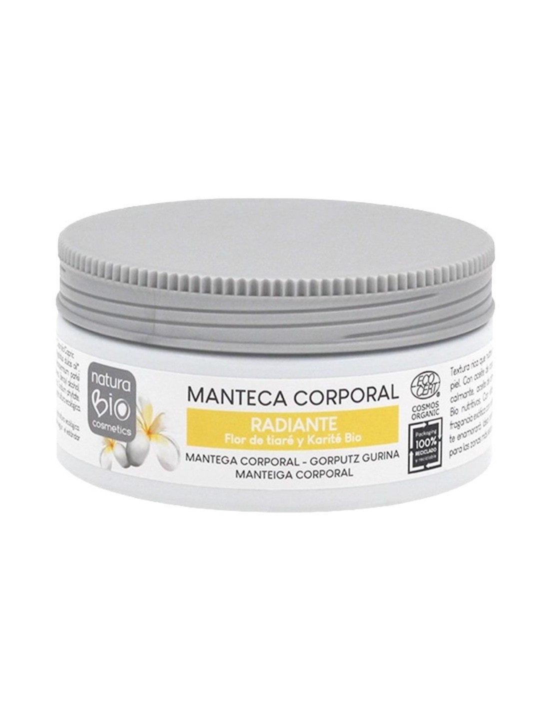 La Manteca Corporal Radiante Flor de Tiaré y Karité de Naturabio Cosmetics es un tratamiento nutritivo e hidratante diseñado para cuidar la piel en profundidad. Su textura rica y cremosa se funde al contacto con la piel, dejándola tersa, suave y con un brillo saludable.