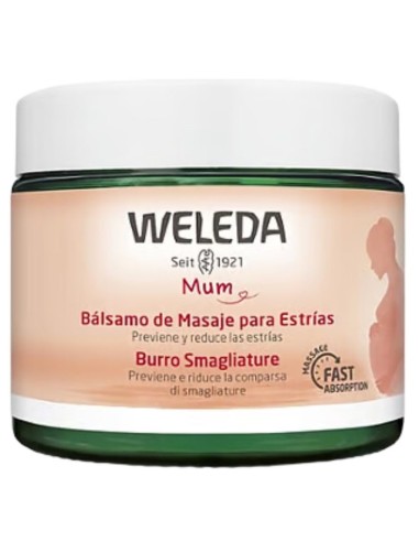 El Bálsamo de Masaje para Estrías de Weleda ha sido desarrollado para prevenir y atenuar las estrías de forma natural, mejorando la elasticidad y firmeza de la piel. Su fórmula combina ingredientes de origen vegetal que nutren en profundidad, suavizan y fortalecen la piel, ayudándola a adaptarse a los cambios corporales típicos del embarazo o de variaciones de peso.