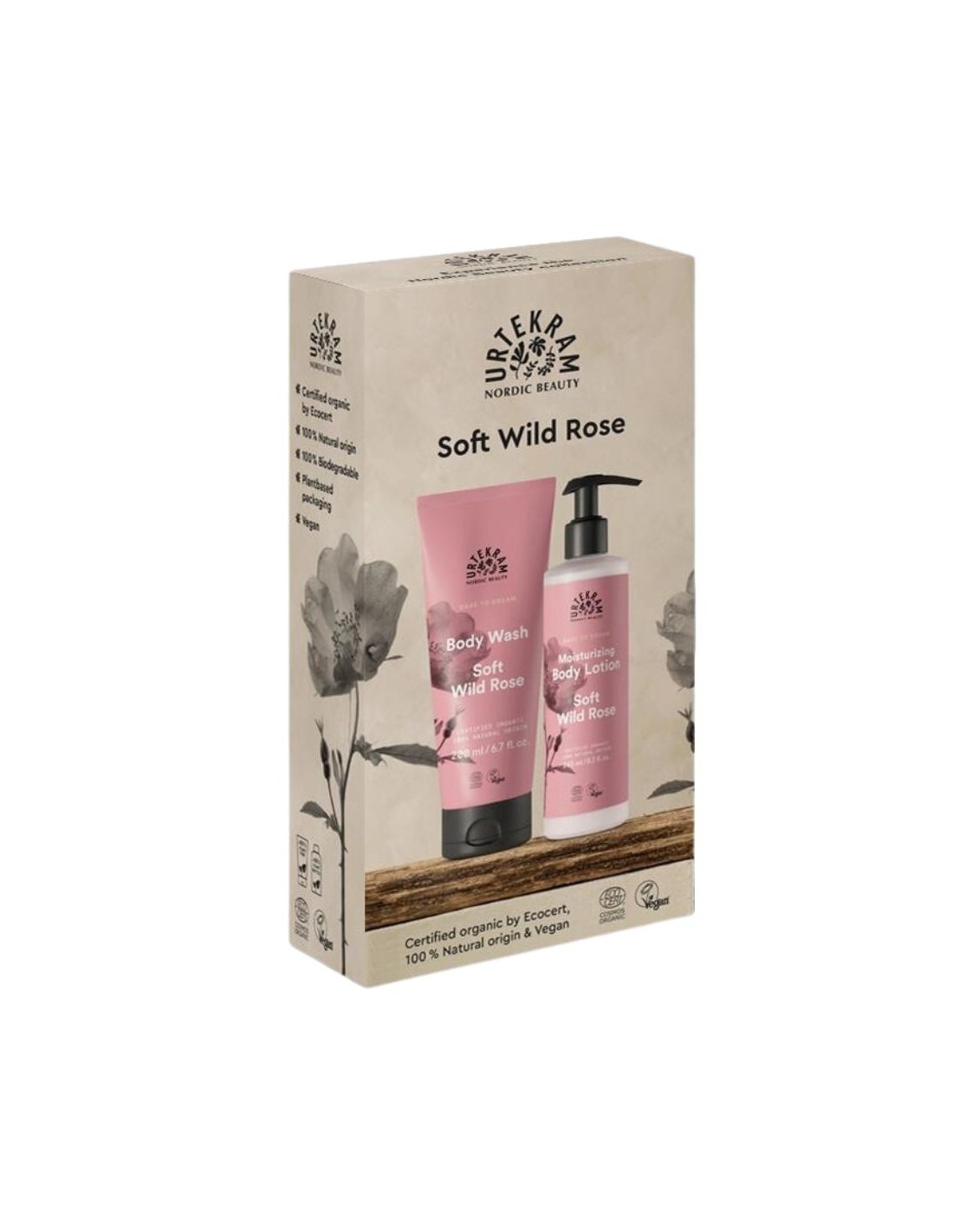 El Pack Soft Wild Rose de Urtekram reúne dos esenciales del cuidado corporal ecológico: un gel de ducha suave y una loción hidratante nutritiva, ambos con el delicado aroma floral de la rosa silvestre. Diseñado para limpiar, hidratar y perfumar la piel con suavidad, este set ofrece una experiencia sensorial única y completamente natural.