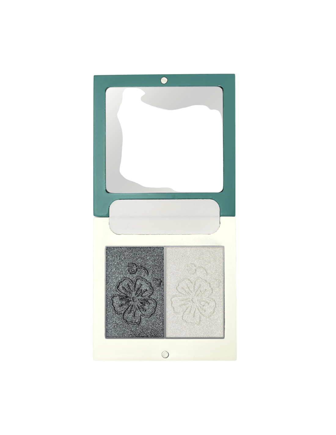 Dúo de sombras DYP 105 con dos tonos complementarios: azul gris de acabado satinado y un plata luminoso. Diseñado para combinarse entre sí y aportar dimensión a la mirada.
