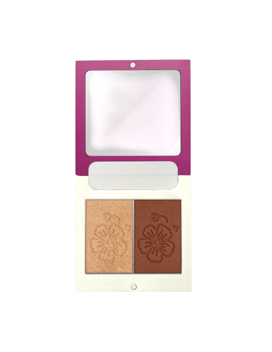 Se presenta en un formato dúo compacto que facilita su transporte y uso diario, perfecto para llevar en el neceser o bolso y hacer retoques en cualquier momento.
