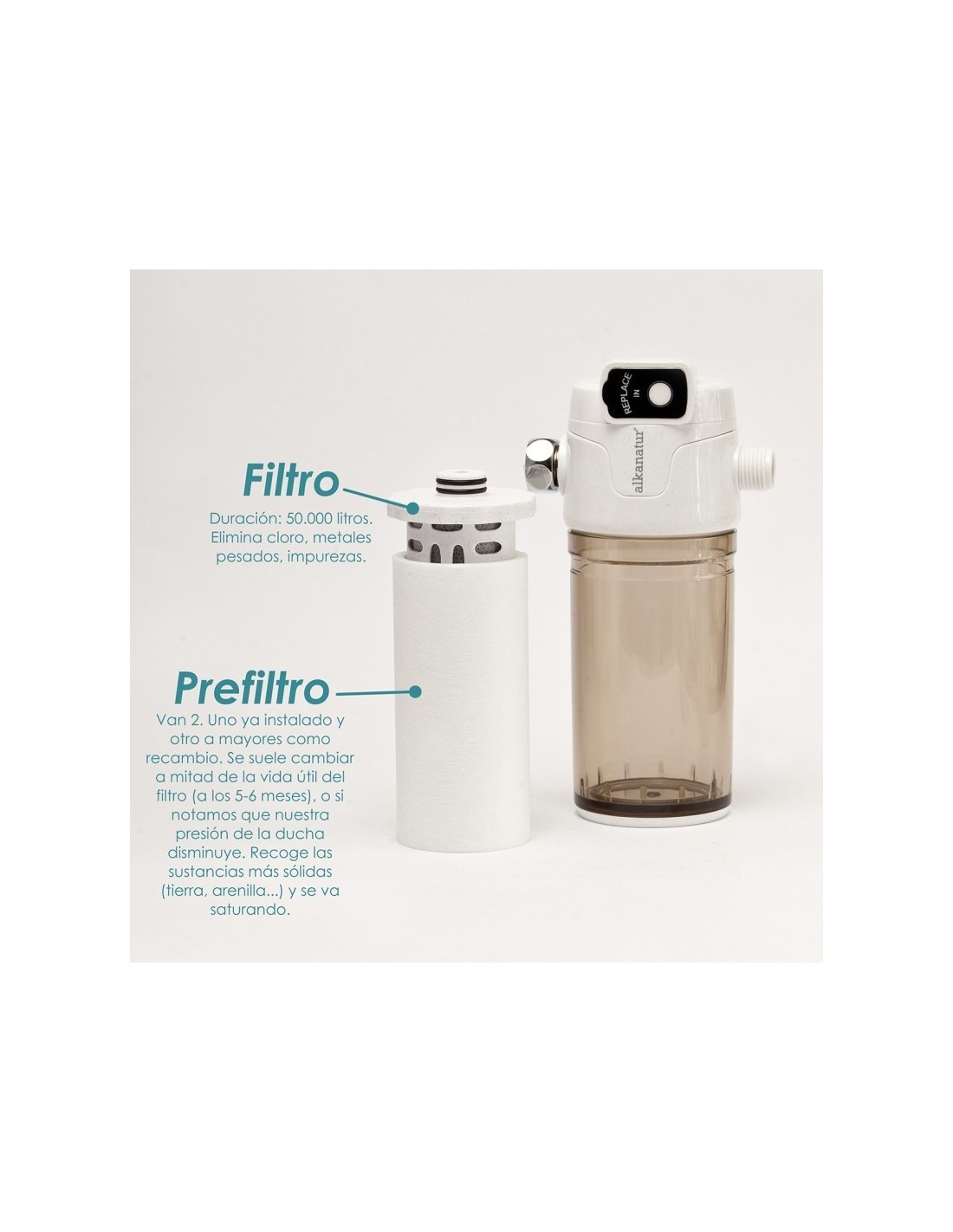 Al recoger estas impurezas antes de que el agua llegue al filtro interno, el prefiltro ayuda a proteger el sistema de depuración principal, encargado de eliminar cloro, metales pesados y otras sustancias no deseadas. De este modo, se mejora el rendimiento del filtro y se prolonga su vida útil.