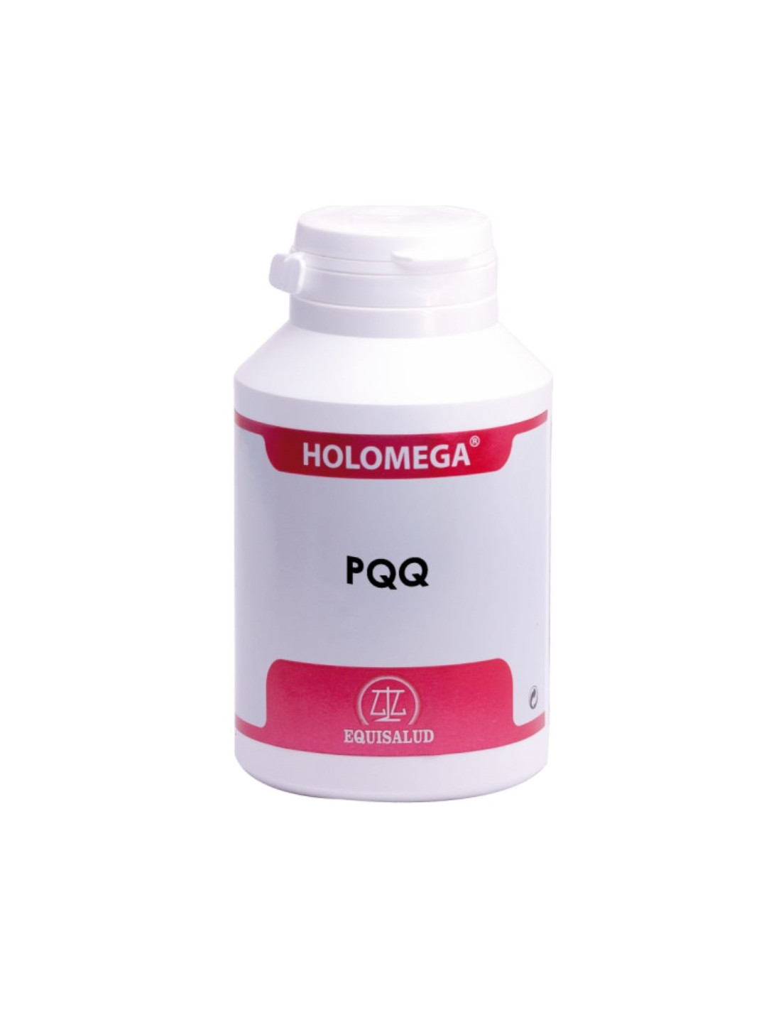 Holomega PQQ 180caps Equisalud se presenta en un bote con 180 cápsulas, diseñado para ofrecer un suministro prolongado en un solo formato compacto.