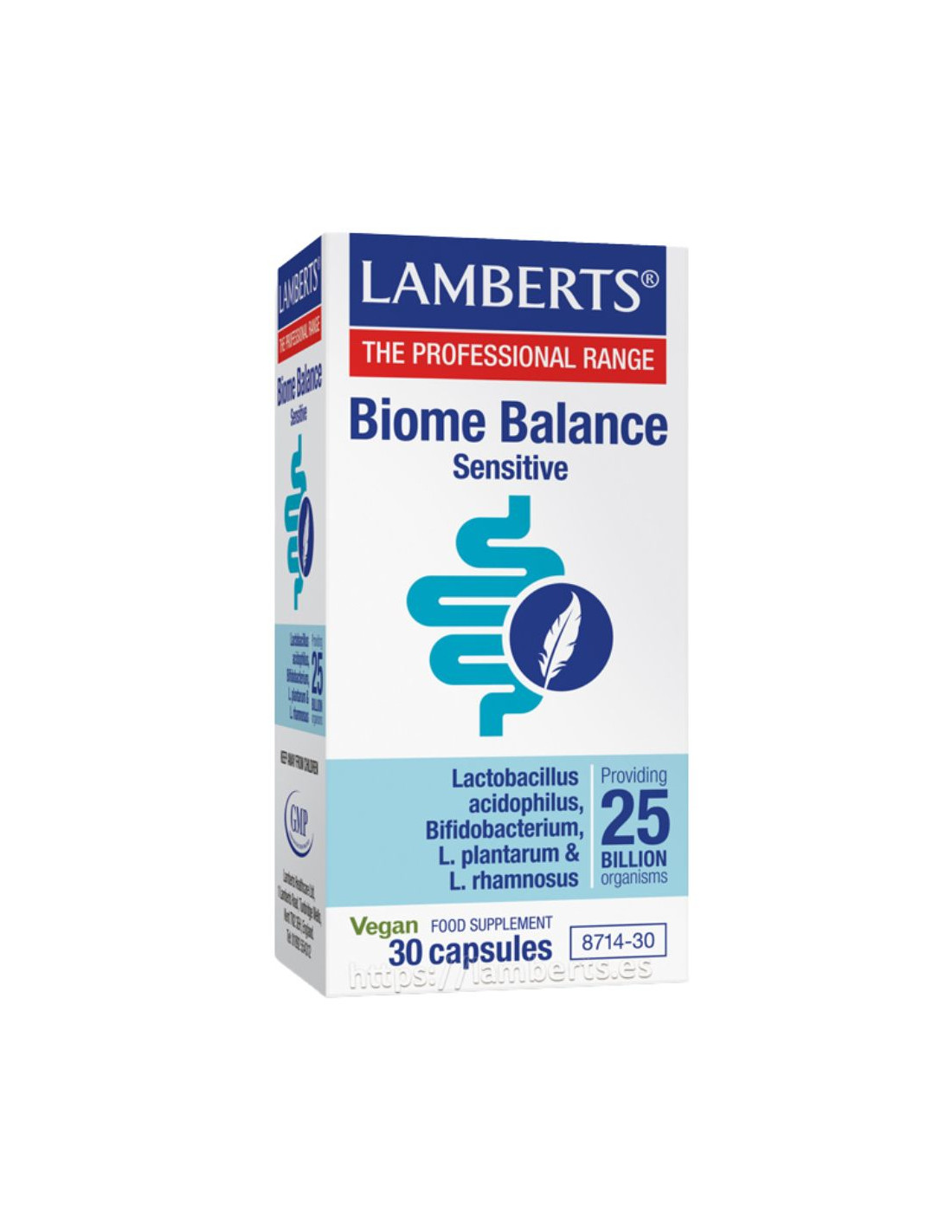 Biome Balance Sensitive Vegan de Lamberts es un suplemento en formato cápsula diseñado para quienes buscan una opción vegana y de fácil tolerancia para el cuidado de su microbiota intestinal. Cada envase contiene 30 cápsulas de administración sencilla.