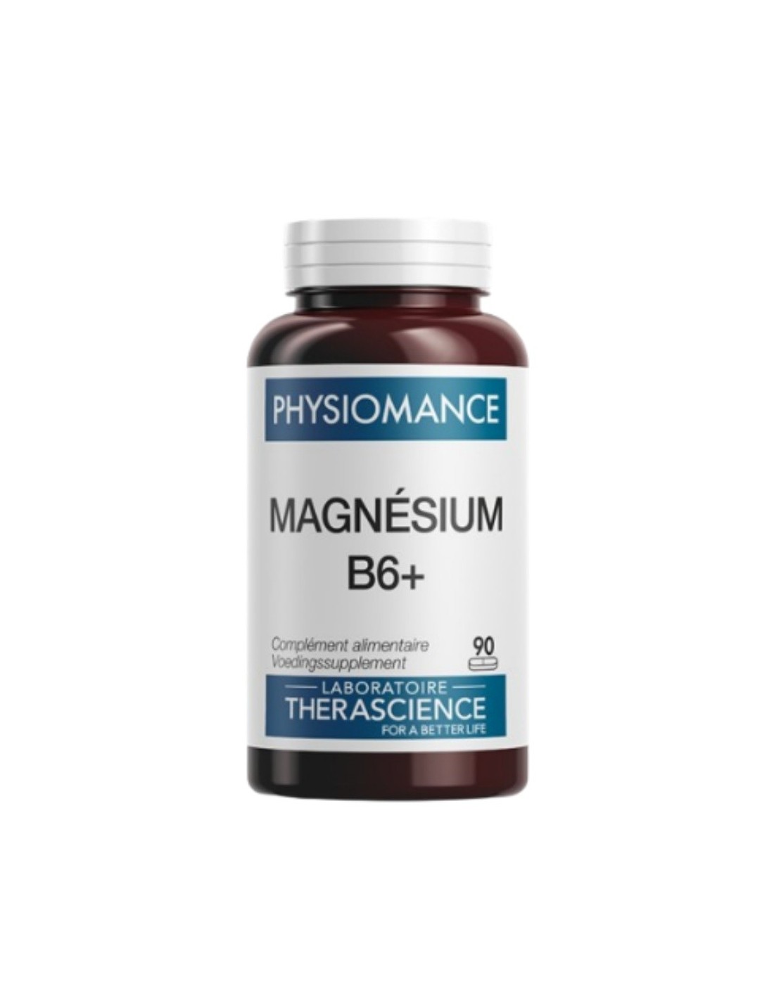 Magnesio B6 de Therascience es un complemento alimenticio que combina 150 mg de magnesio y 1,4 mg de vitamina B6 por comprimido. Esta asociación está diseñada para contribuir al funcionamiento normal del sistema nervioso y muscular, así como a la reducción del cansancio y la fatiga.
