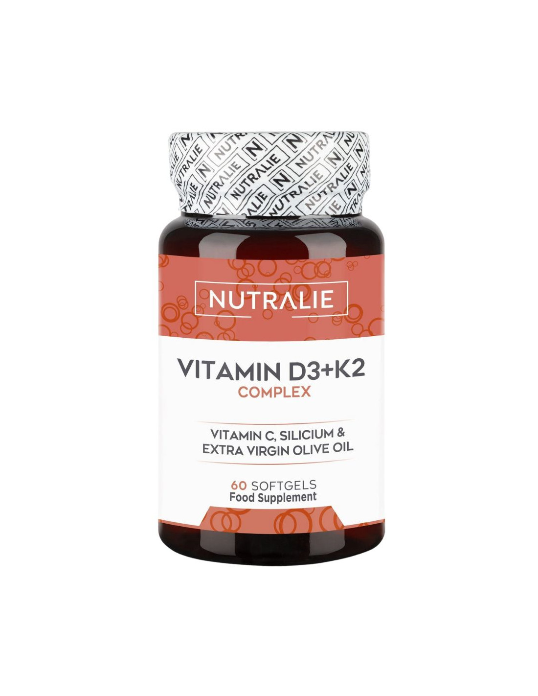 Vitamina D3 K2 Complex 60caps de Nutralie es un complemento alimenticio formulado para aportar dosis elevadas de colecalciferol (vitamina D3) junto con vitamina K2 en forma de menaquinona MK‑7. Está pensado para usuarios que buscan un aporte concentrado y una formulación orientada a la absorción.