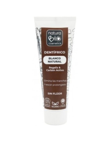Naturabio Cosmeticsin Natural White Toothpaste Licorice & Bio Active Charcoal 75 ml on luonnollinen, vegaaninen ja erittäin tehokas vaihtoehto niille, jotka etsivät hellävaraista hampaiden valkaisua ilman aggressiivisia ainesosia. Sen koostumuksessa yhdistyvät luonnollinen aktiivihiili, orgaaninen minttu, lakritsi ja fenkoli, jotka tarjoavat täydellisen suunhoidon ja pitkäkestoisen raikkaan tunteen.