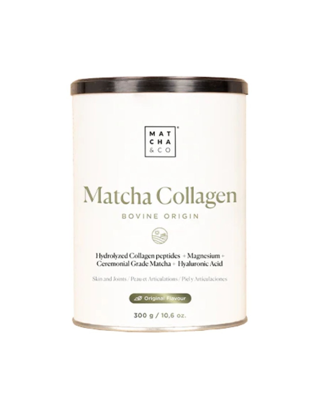 Matcha Collagen Original Matcha & CO on jauhemainen ravintolisä, jossa yhdistyvät tyypin I ja III kollageenipeptidit, magnesium, hyaluronihappo ja orgaaninen matcha-tee.
