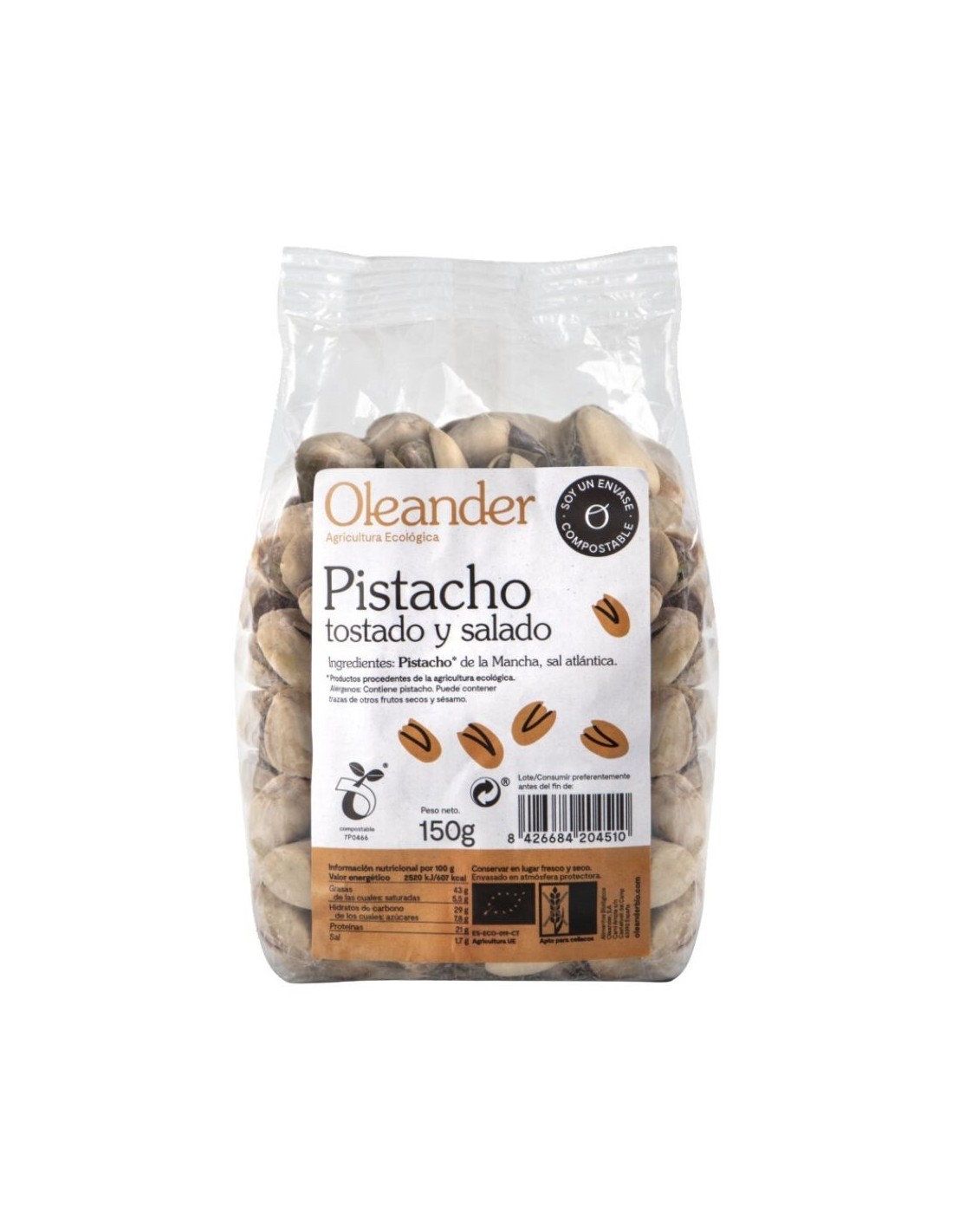 Oleander's Organic Roasted Salted Pistachios 150g on luonnonmukainen, luonnollinen ja rapea välipala, proteiinin ja terveellisten rasvojen lähde, jossa on ripaus Atlantin suolaista suolaa, joka parantaa niiden makua.