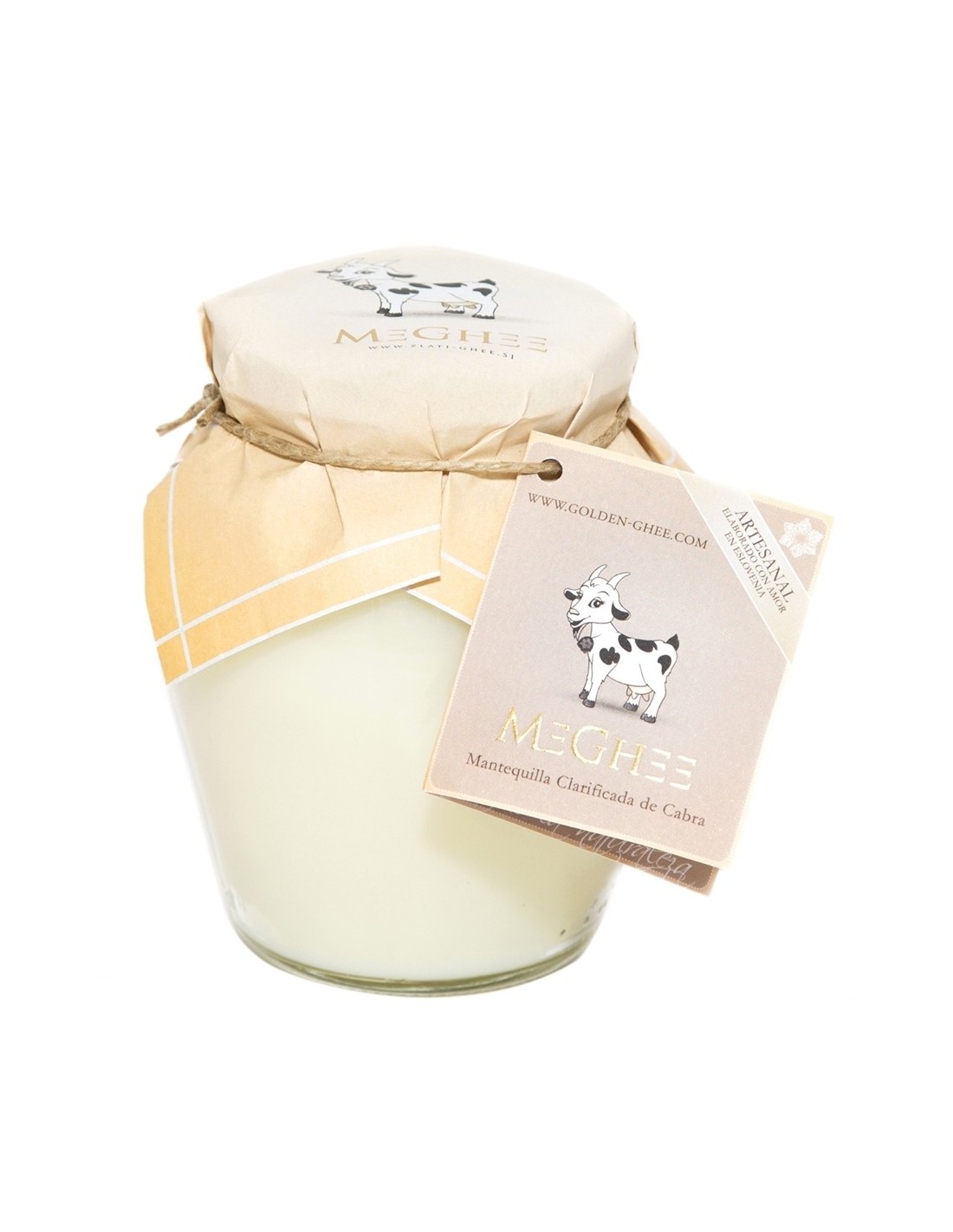 Golden Ghee Meghee Clarified Goat Butter 370ml est un ghee artisanal biologique, sans lactose et très digeste. Idéal pour cuisiner, tartiner ou utiliser dans les cosmétiques naturels.