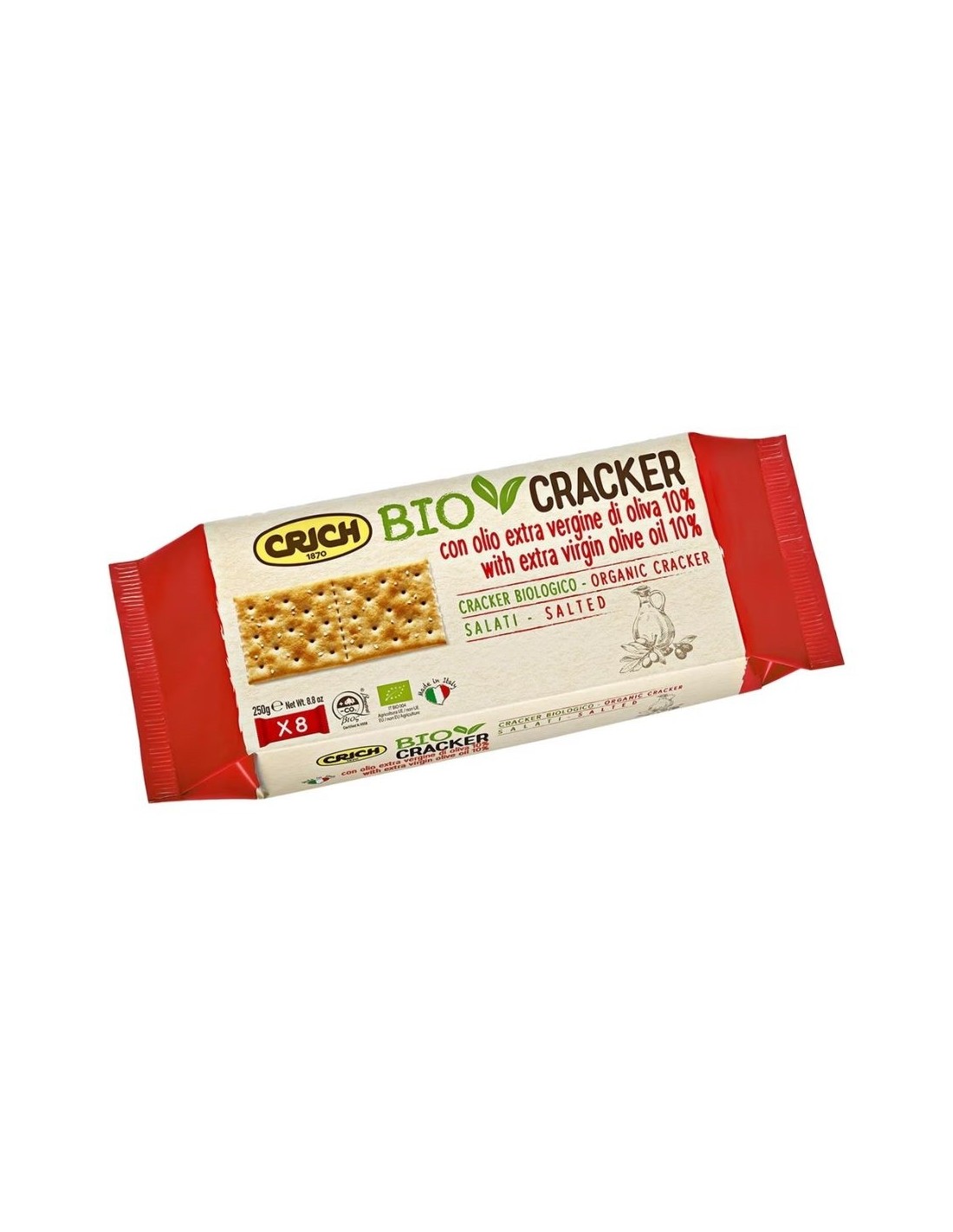 Les Biocrackers salés à l'huile d'olive biologique de Crich sont un en-cas léger et naturel qui allie le goût authentique du blé à l'onctuosité de l'huile d'olive extra vierge. Leur texture fine et croquante les rend idéaux pour être dégustés seuls ou pour accompagner des crèmes, des fromages, des pâtés ou tout autre en-cas sain.