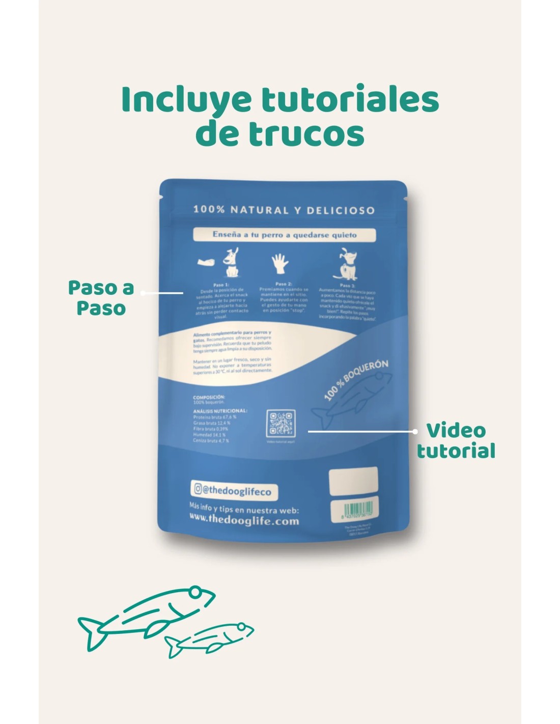 délicieux et 100% naturel ! Anchois déshydratés sans céréales ni additifs, idéaux pour récompenser sainement votre chien. Ils favorisent le nettoyage des dents et aident à la relaxation. Convient aux chiots, aux chiens et aux chats. Fabriqués avec amour en Espagne.