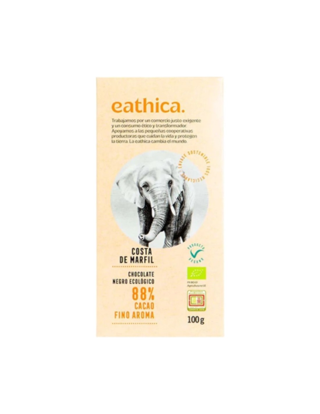 Tavoletta di cioccolato fondente biologico all'88% di Ethiquable, prodotta con cacao proveniente dalla Costa d'Avorio. Intensa, equilibrata e certificata dal commercio equo e solidale.