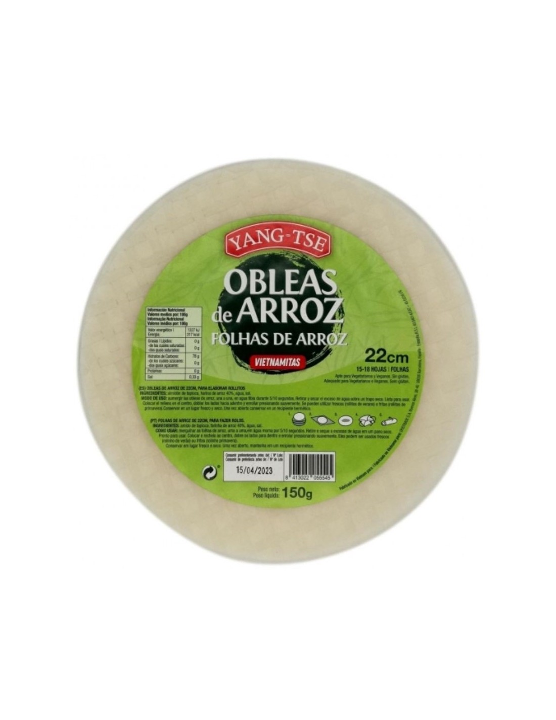 Le cialde di riso Yang Tse sono sottili fogli circolari a base di farina di riso e amido di tapioca, con una consistenza leggera e flessibile quando sono idratate. Il loro sapore neutro le rende una base versatile per una varietà di ricette di ispirazione asiatica e per una cucina creativa e salutare.