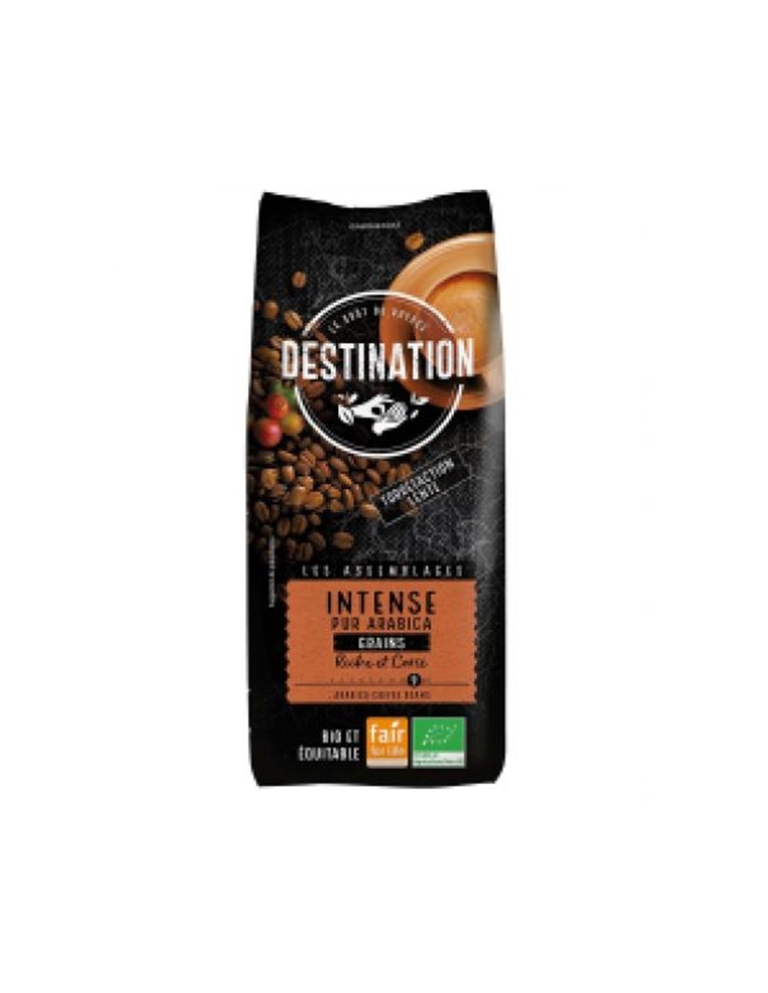 Il caffè Intense Bean Arabica Bio 1Kg Destination combina arabica e robusta coltivate biologicamente, offrendo un sapore intenso, note tostate e un finale lungo ed equilibrato.