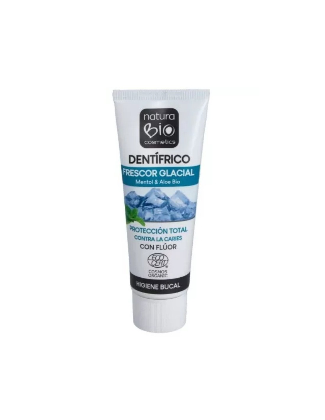 Naturabio Cosmetics Glacial Freshness Eco Toothpaste 75ml è un dentifricio ecologico e vegano progettato per offrire una protezione completa contro la carie, grazie alla sua formula con due tipi di fluoro che rafforzano lo smalto e aiutano a prevenire efficacemente la comparsa della carie.