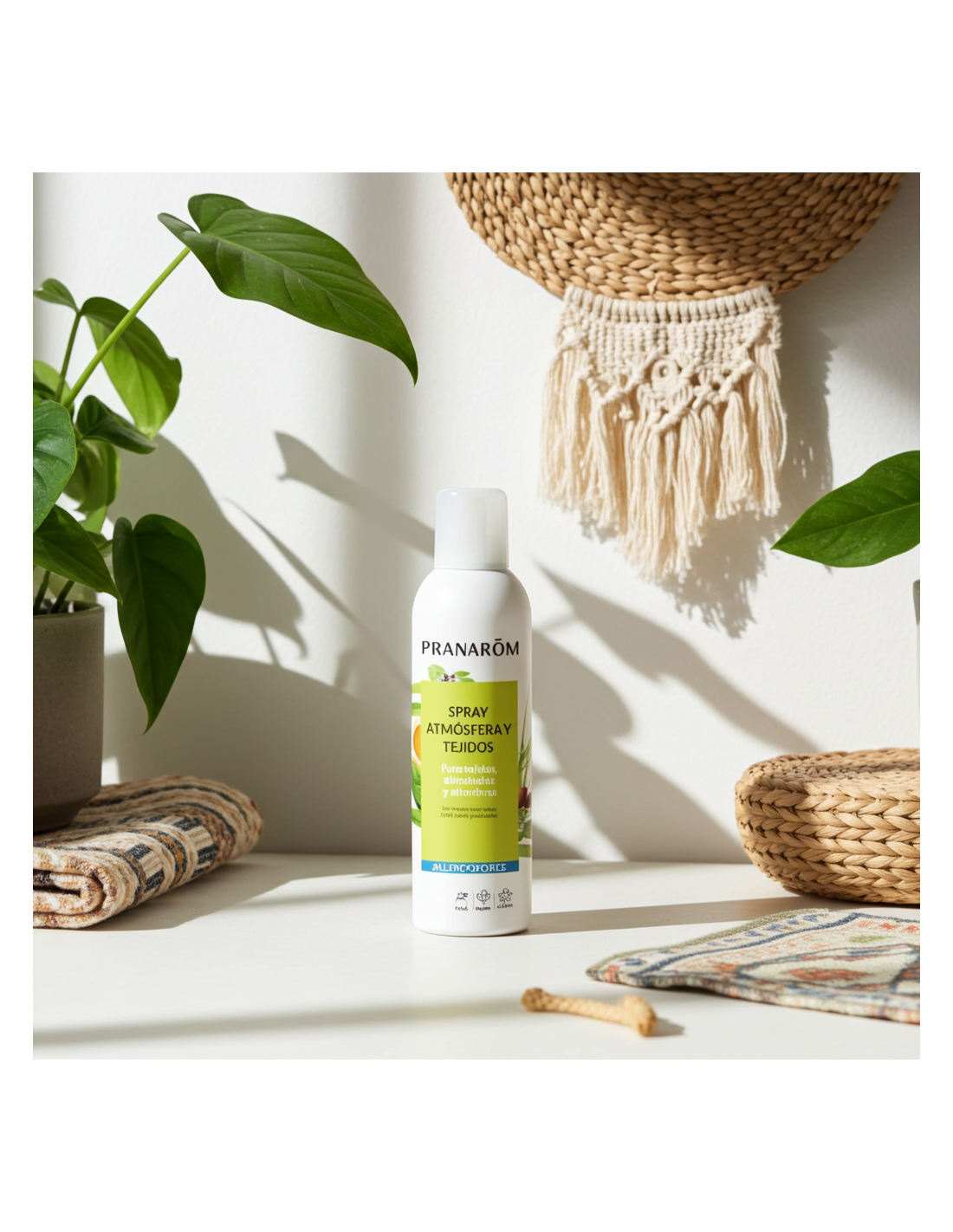 Allergoforce Sfeer- en textielspray 150 ml is een natuurlijke reiniger die de aanwezigheid van allergenen in de lucht en op huishoudoppervlakken vermindert. De combinatie van 100% zuivere en natuurlijke essentiële oliën werkt in op de belangrijkste veroorzakers van ademhalingsallergieën, zoals huisstofmijt, pollen en allergenen van dieren.